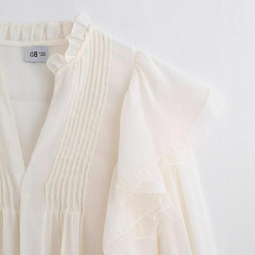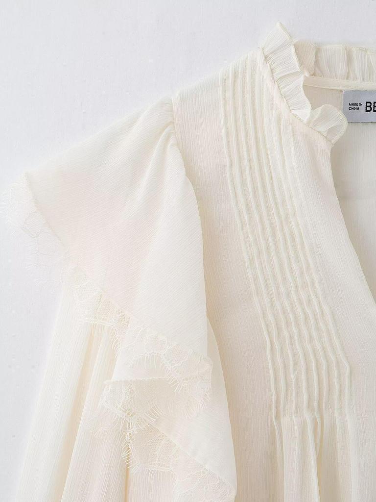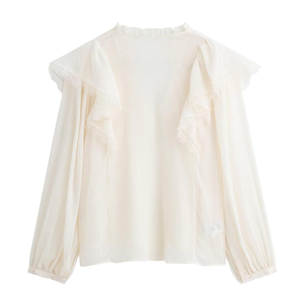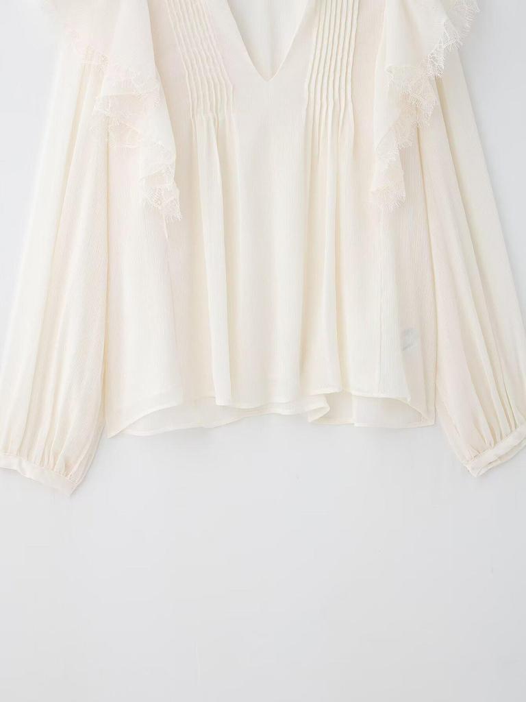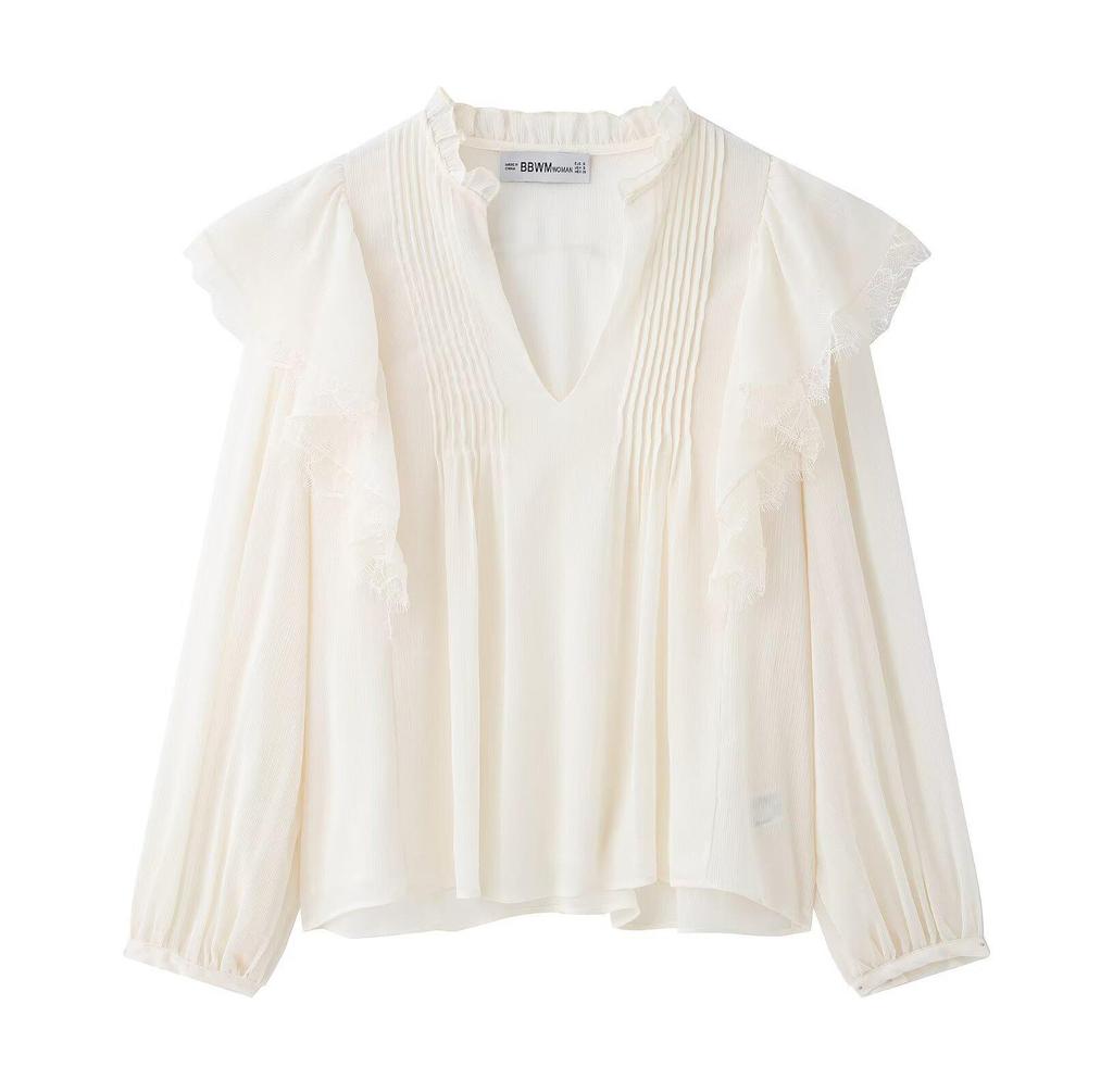 TAOP&ZA Весна/Лето Элегантная женская блузка с V-образным вырезом, длинными рукавами и оборками