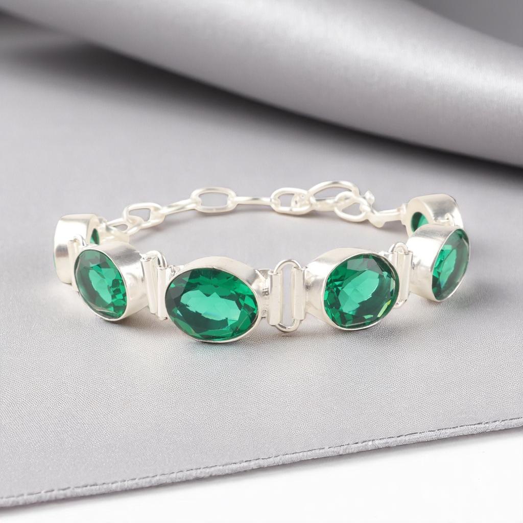 Овальный Хромдиопсид Драгоценный камень 925 Стерлинговое серебро Ювелирные изделия Ручной работы Браслет 8" RB-4-14