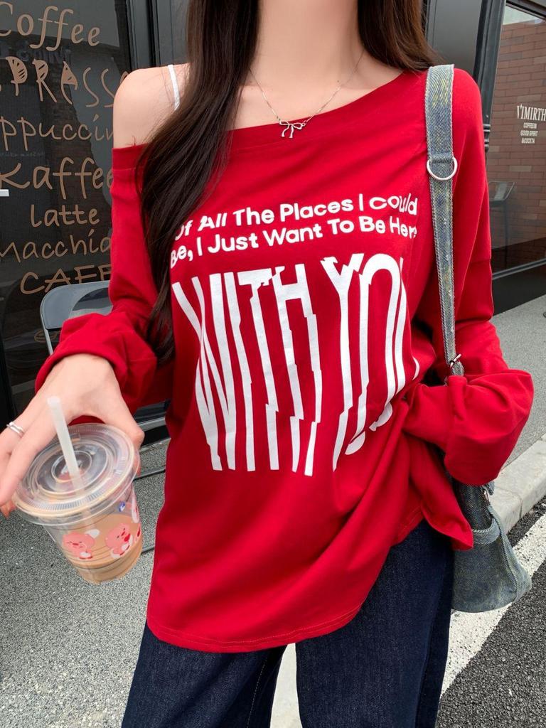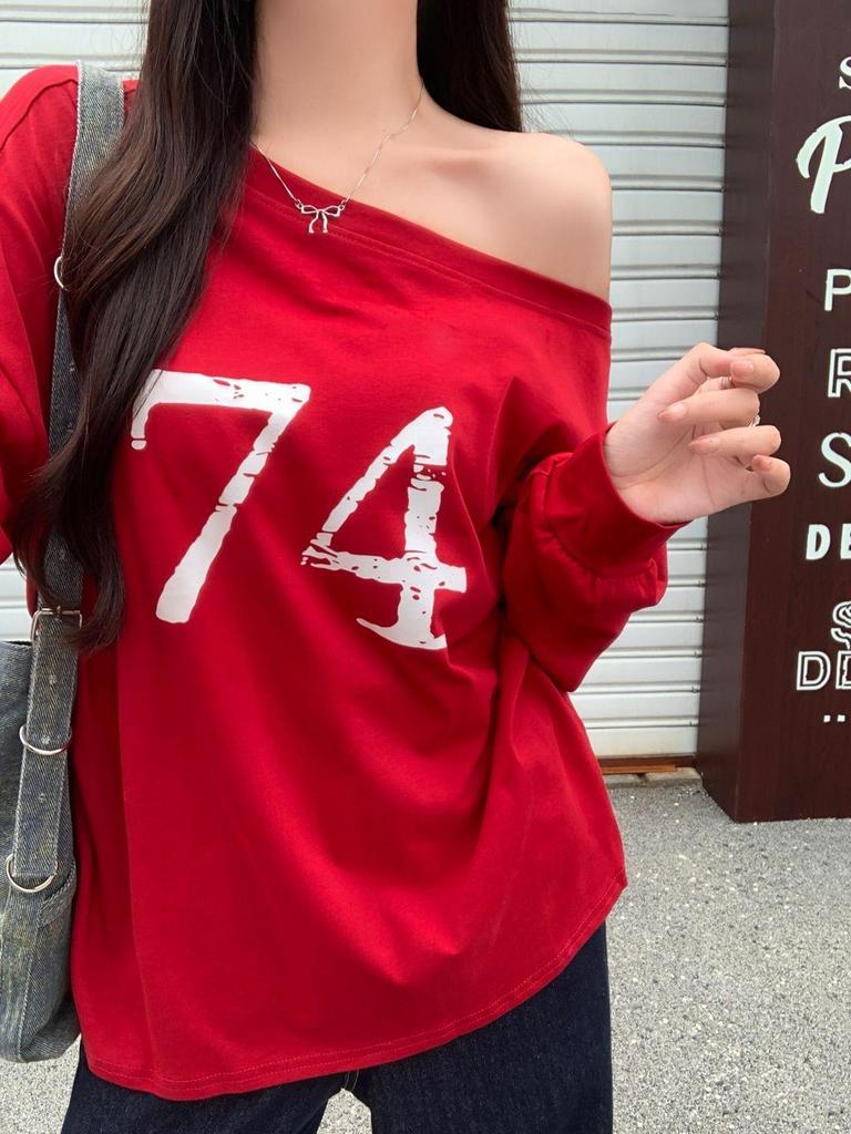 Женская толстовка оверсайз с открытыми плечами, коллекция весна/осень 2025, двусторонняя, свободный крой, скошенные плечи, в стиле «ленивый стиль».