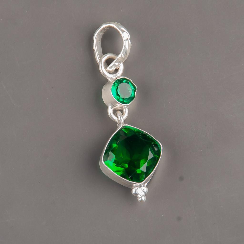 Хромдиопсид Драгоценный камень 925 Стерлинговое серебро Ювелирные изделия Ручная работа Подвеска 1,60" Подарок PP-9-8