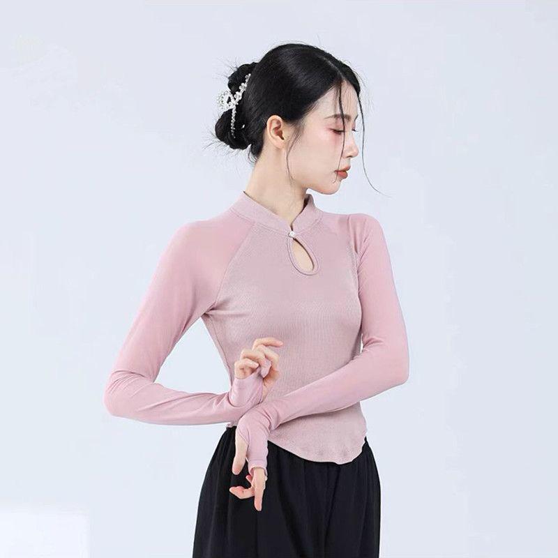 Женский ретро-шик топ с длинным рукавом для йоги и танцев - облегающий крой, китайский стиль — купить товар онлайн с бесплатной доставкой по всему миру!