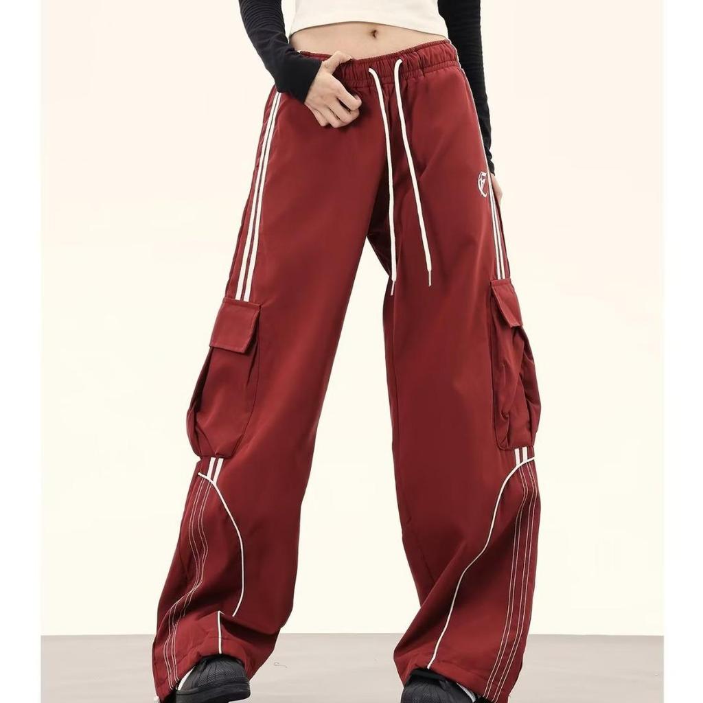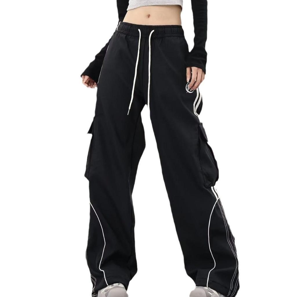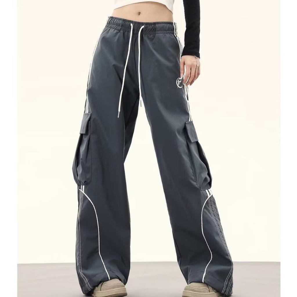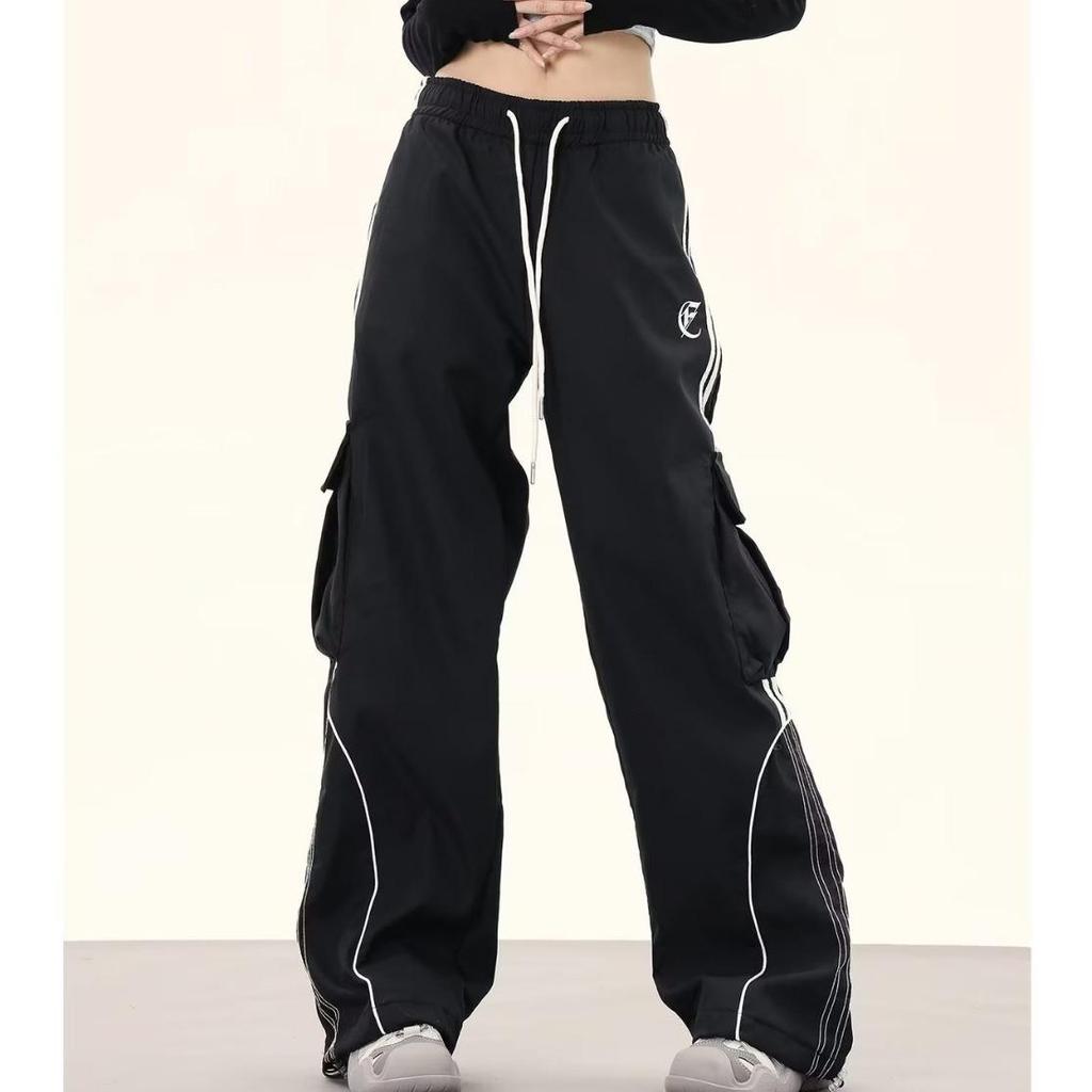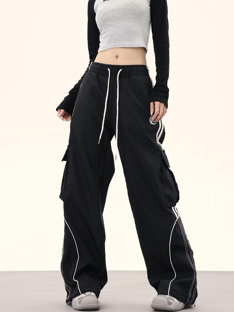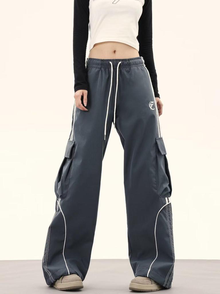 Женские ретро цветные блоки хип-хоп карго спортивные штаны - Свободные широкие штанины до пола