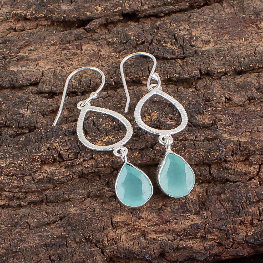 Аква Халцедон Драгоценный Камень 925 Стерлинговое Серебро Ювелирные Изделия Ручной Работы Серьги 1.90" EE-16-15