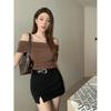 Женский облегающий топ на одно плечо с коротким рукавом - Летняя футболка с открытыми плечами