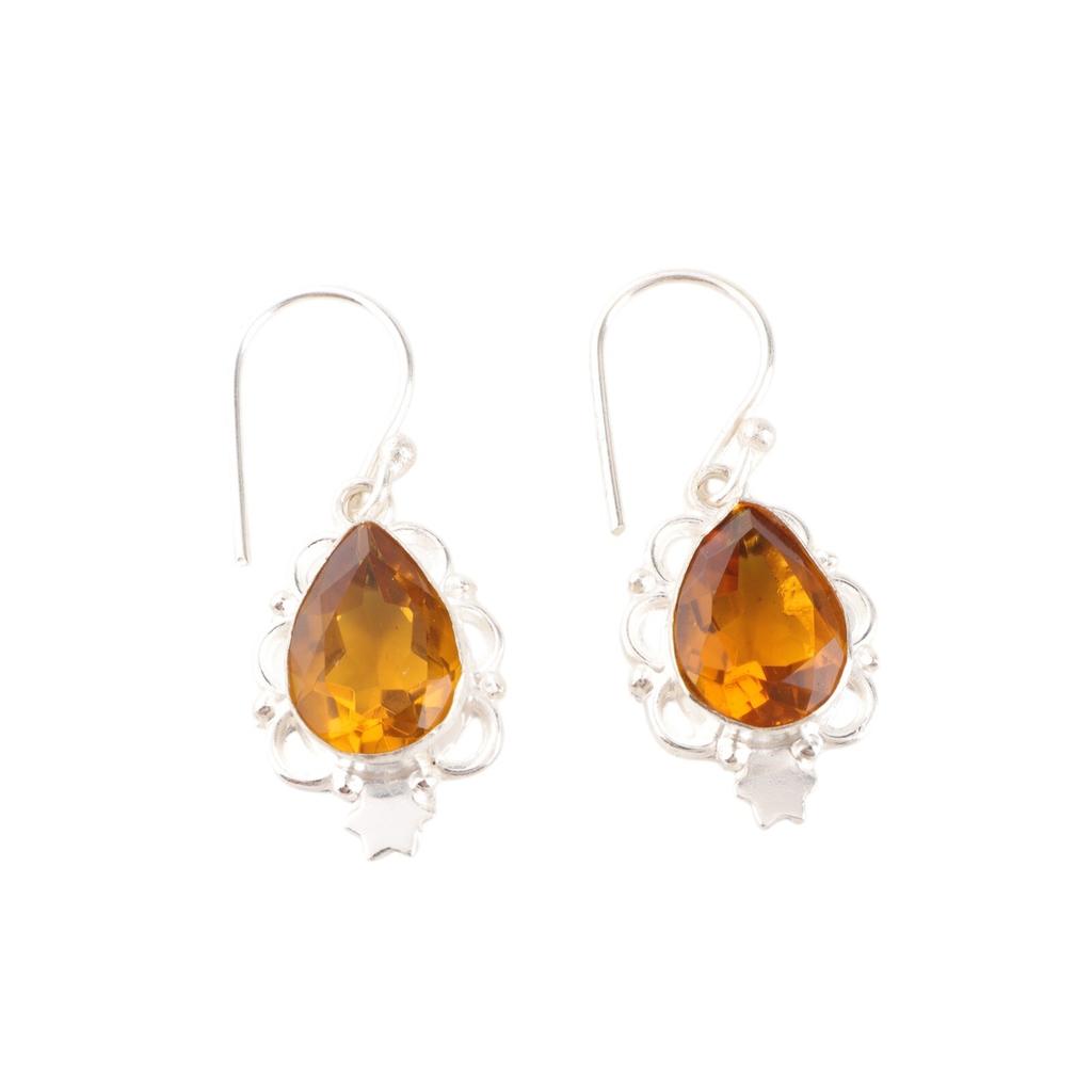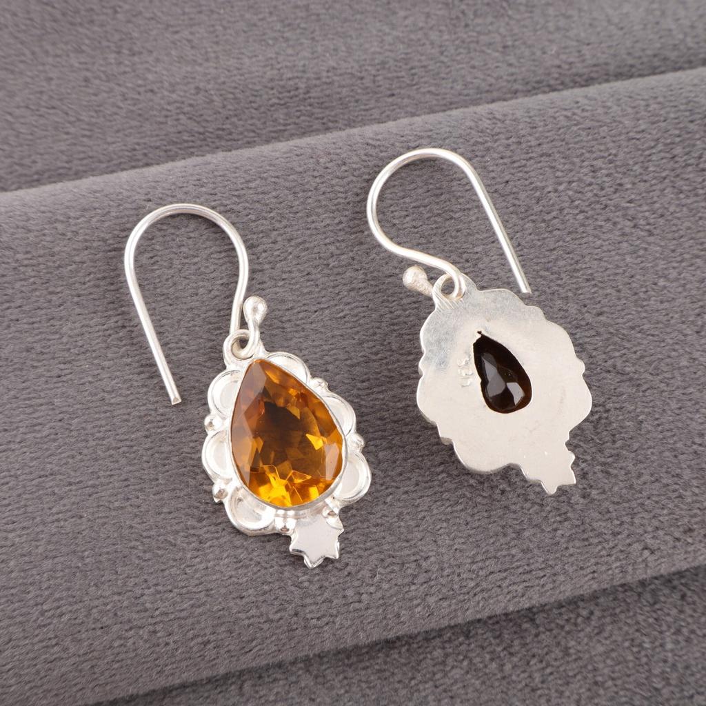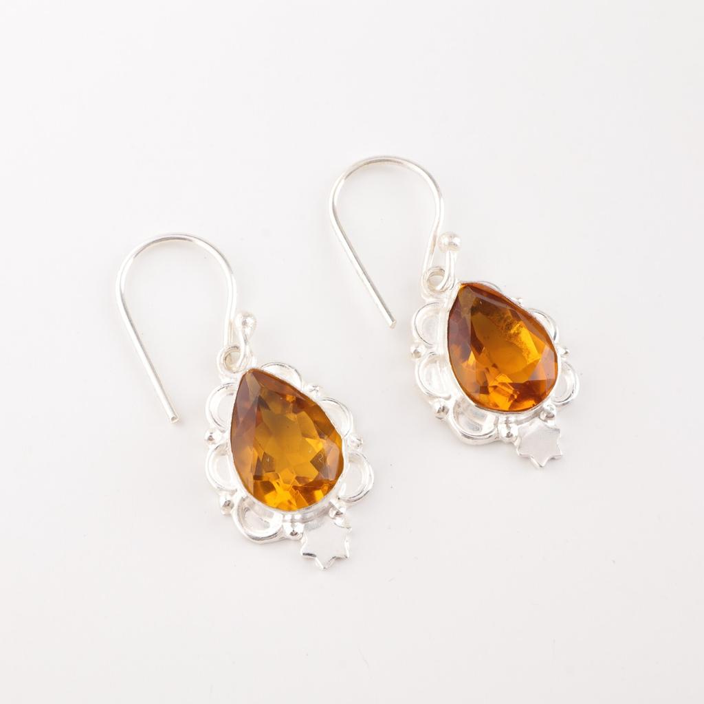 Цитрин Драгоценный камень 925 Стерлинговое серебро Ручная работа Ювелирные изделия Женские серьги Для подарка EE-163-3