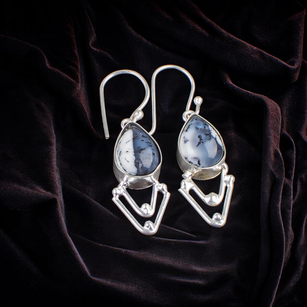 Дендритовый Опал Драгоценный Камень 925 Стерлинговое Серебро Дизайнерские Ювелирные Изделия Серьги 1,90" Подарок EE-39-21