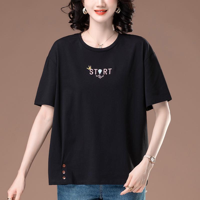 Ощутите комфорт и стиль лета в этой красиво вышитой футболке свободного кроя, разработанной специально для больших размеров.. Изготовленный из мягкого и дышащего хлопка, этот топ с короткими рукавами обещает сохранять прохладу и комфорт в течение всего сезона.. Благодаря классическому круглому вырезу горловины, он легко сочетает в себе повседневную элегантность и практичность.. Эта футболка, идеально подходящая для сочетания с вашими любимыми джинсами или шортами, является обязательным дополнением к вашему летнему гардеробу.