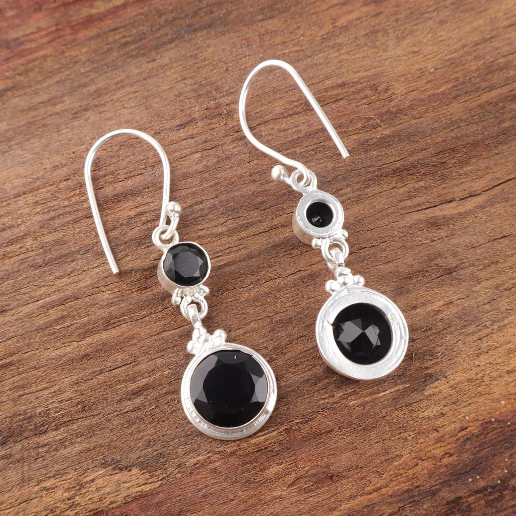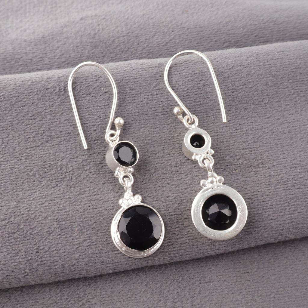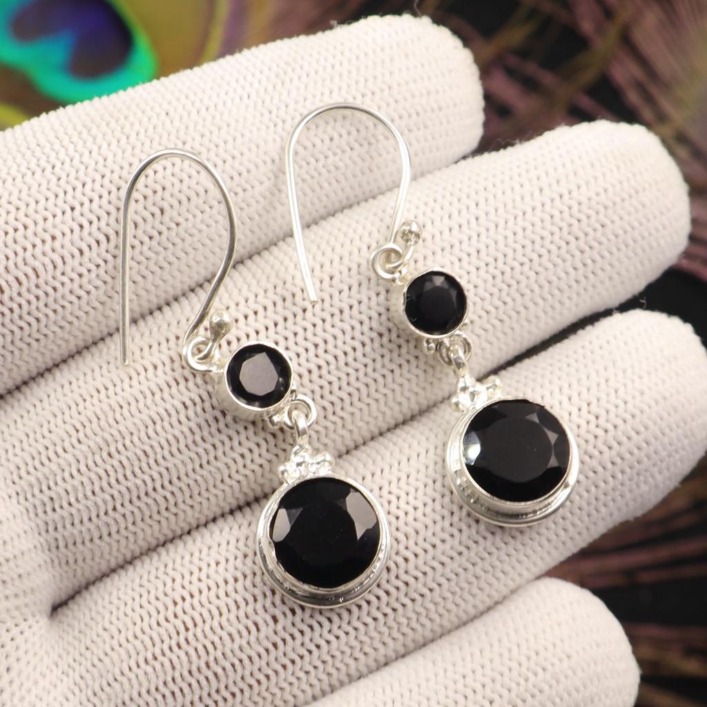 Серьги с драгоценным камнем Черный Оникс из стерлингового серебра 925 пробы ручной работы, Рождественский подарок EE-160-14
