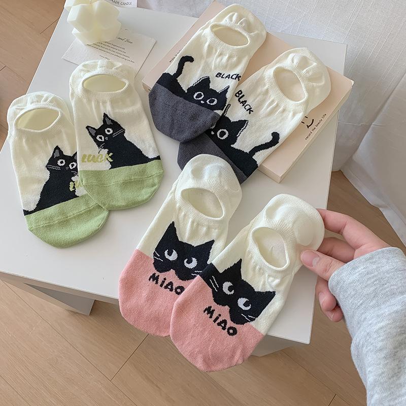 Невидимые носки с низким вырезом для девочек, весенне-летние мультяшные носки-лодочки с маленькими животными, милые короткие носки, впитывающие пот бесшовные носки для девочек