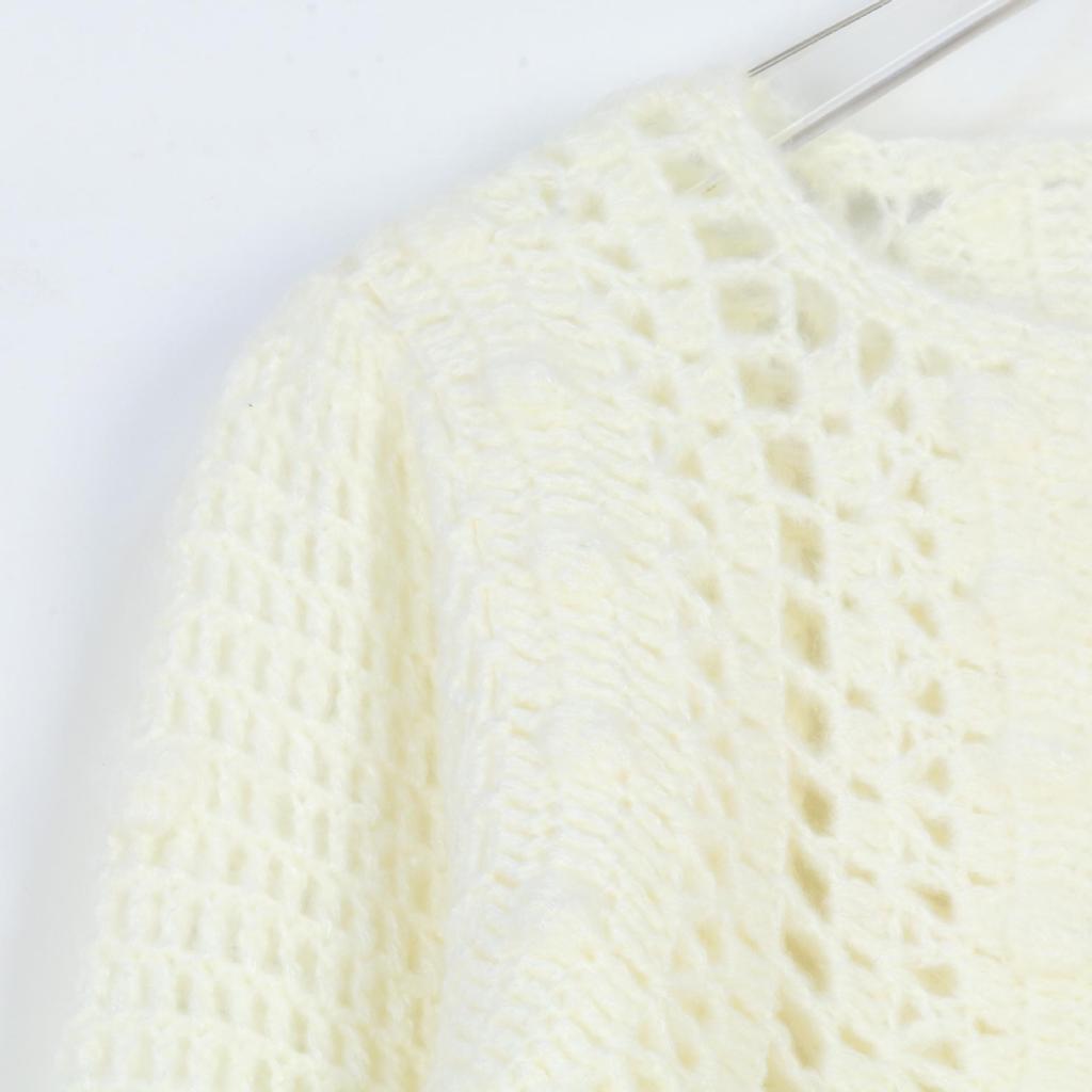 Белый 19392 Ажурный кардиган с длинным рукавом и неровным краемРазмер