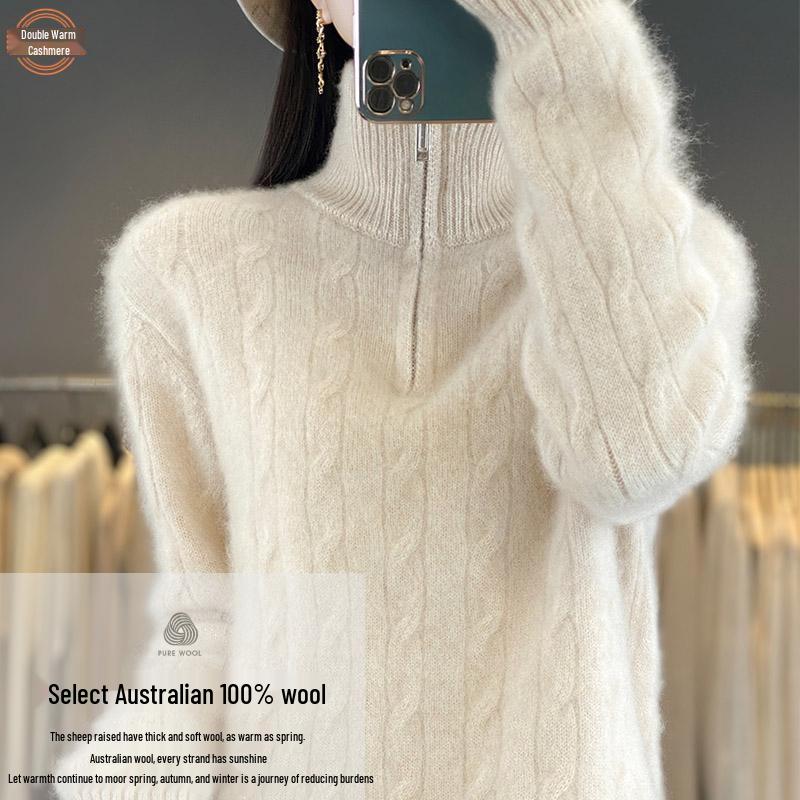 Женский облегающий пуловер из чистой шерсти с высоким воротом, крупной вязки «косы», кашемировый на молнии до середины груди — купить товар онлайн с бесплатной доставкой до всему миру!