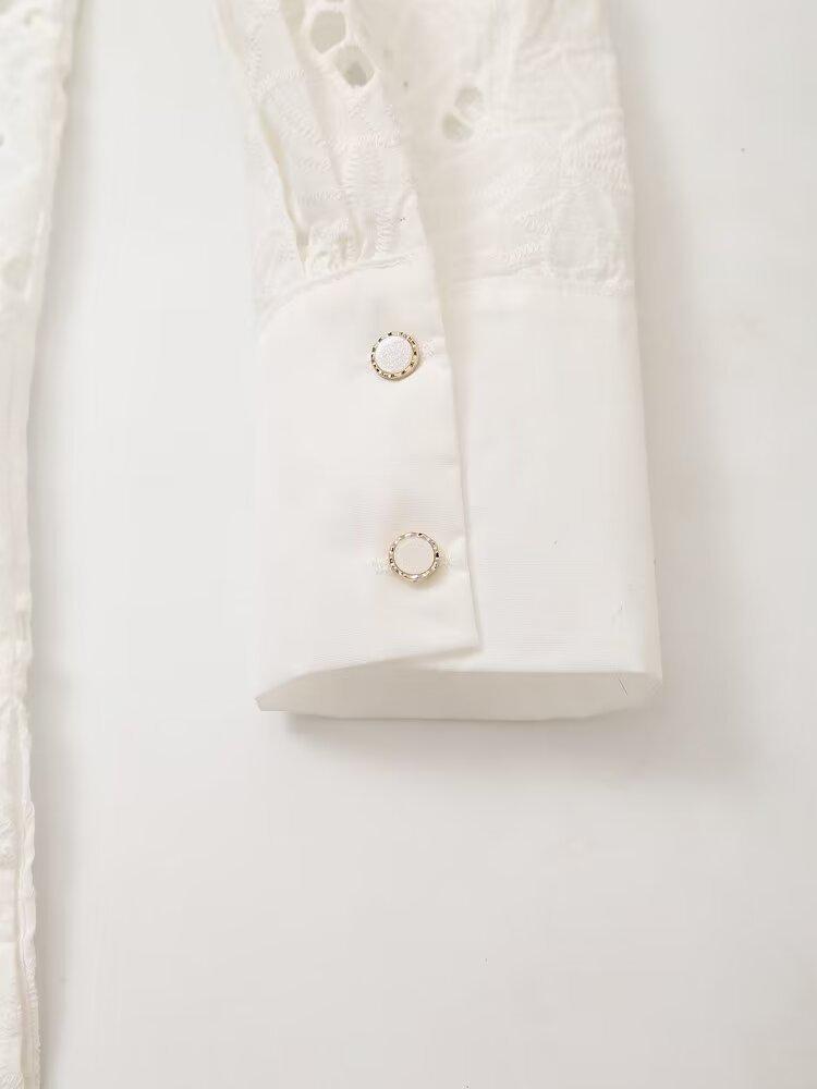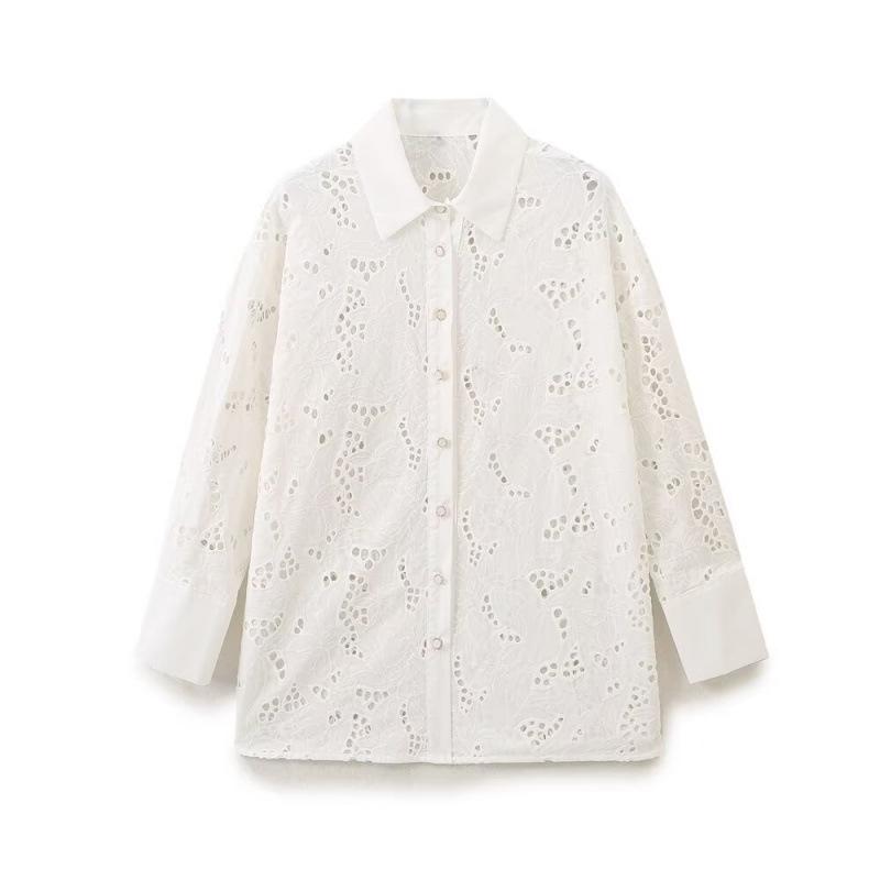 Летняя европейская и американская уличная мода: Женская свободная рубашка с полым вышитым узором и длинными рукавами