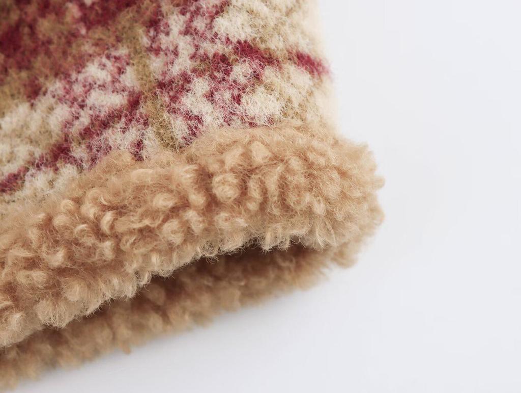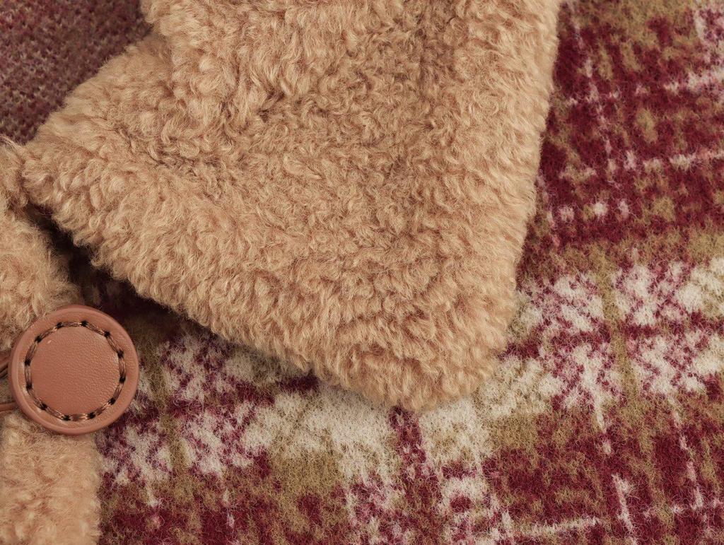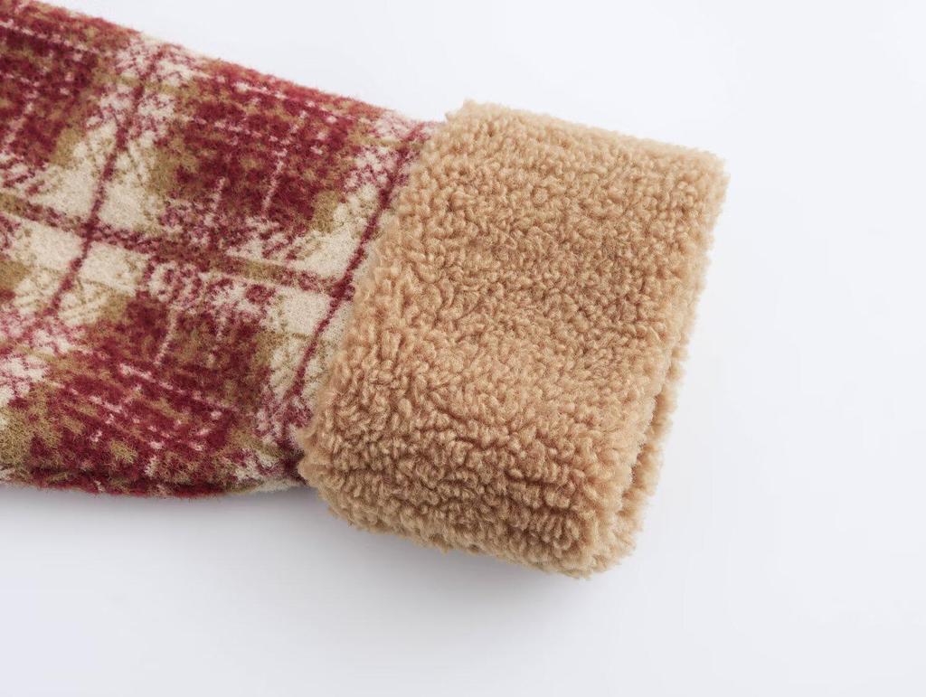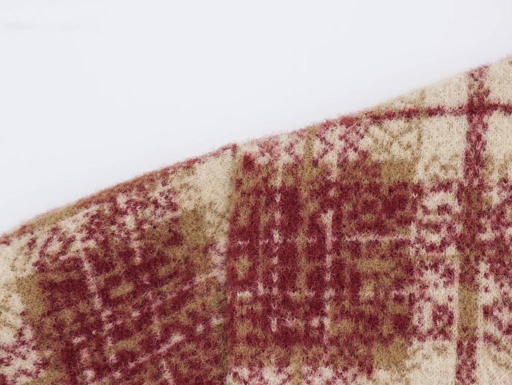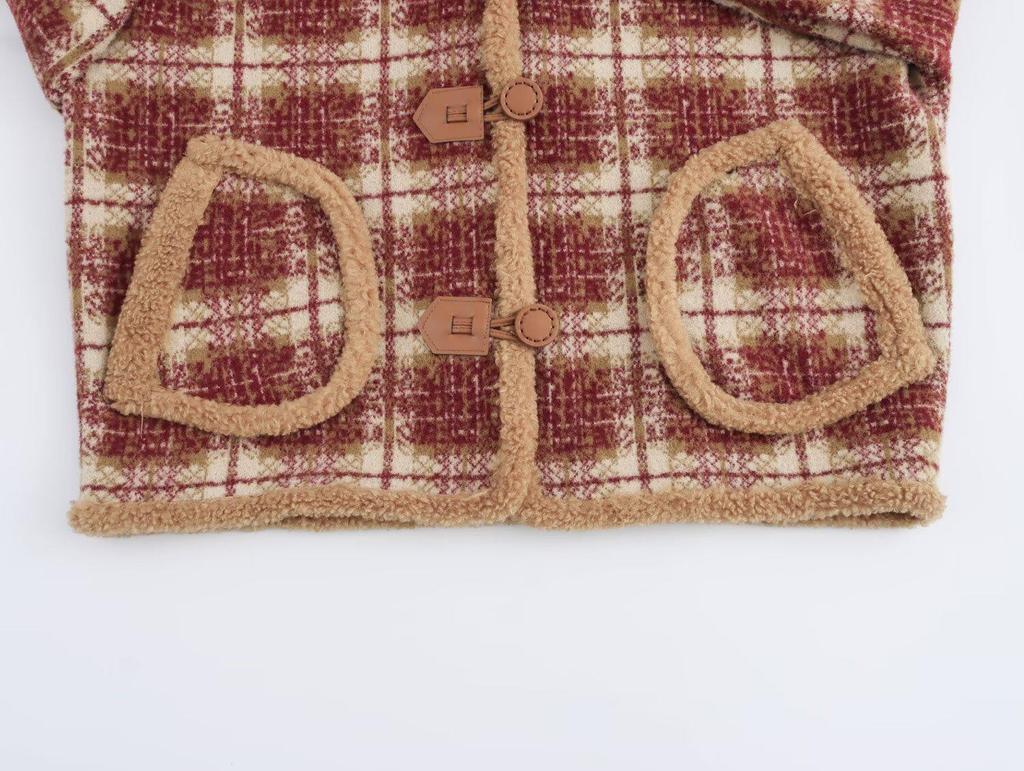 Женский трикотажный кардиган в клетку в европейском и американском стиле, осень 2024, с воротником и манжетами из овечьей шерсти