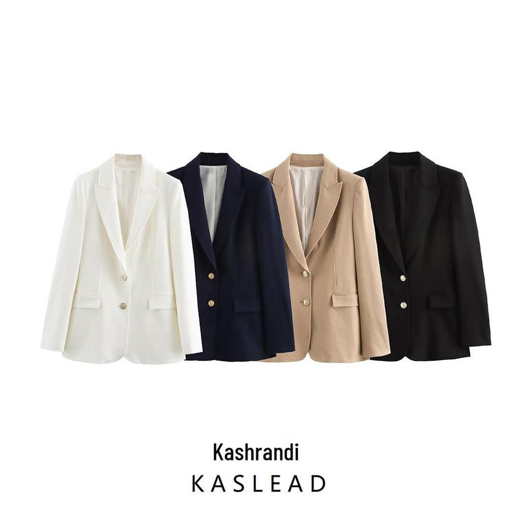 Женский приталенный пиджак в европейском и американском стиле на осень 2024 года с металлической пряжкой