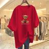 Женская летняя хлопковая футболка с принтом медведя - Корейский стиль, Свободный крой, Короткий рукав