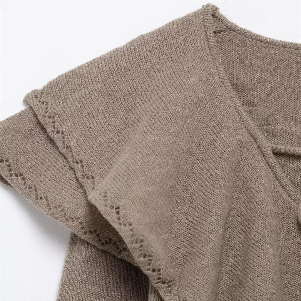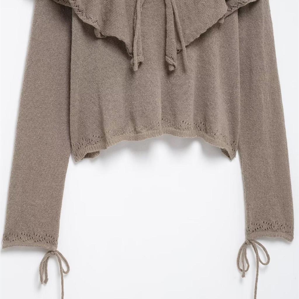 Весна 2025 Женский многослойный трикотаж с оборками и V-образным вырезом на завязках