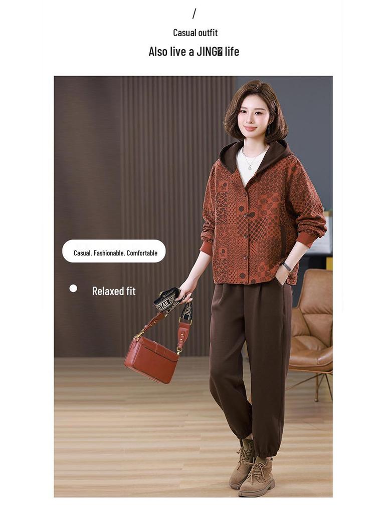 Повседневный комплект из двух предметов большого размера: куртка с капюшоном и брюки гаремного типа