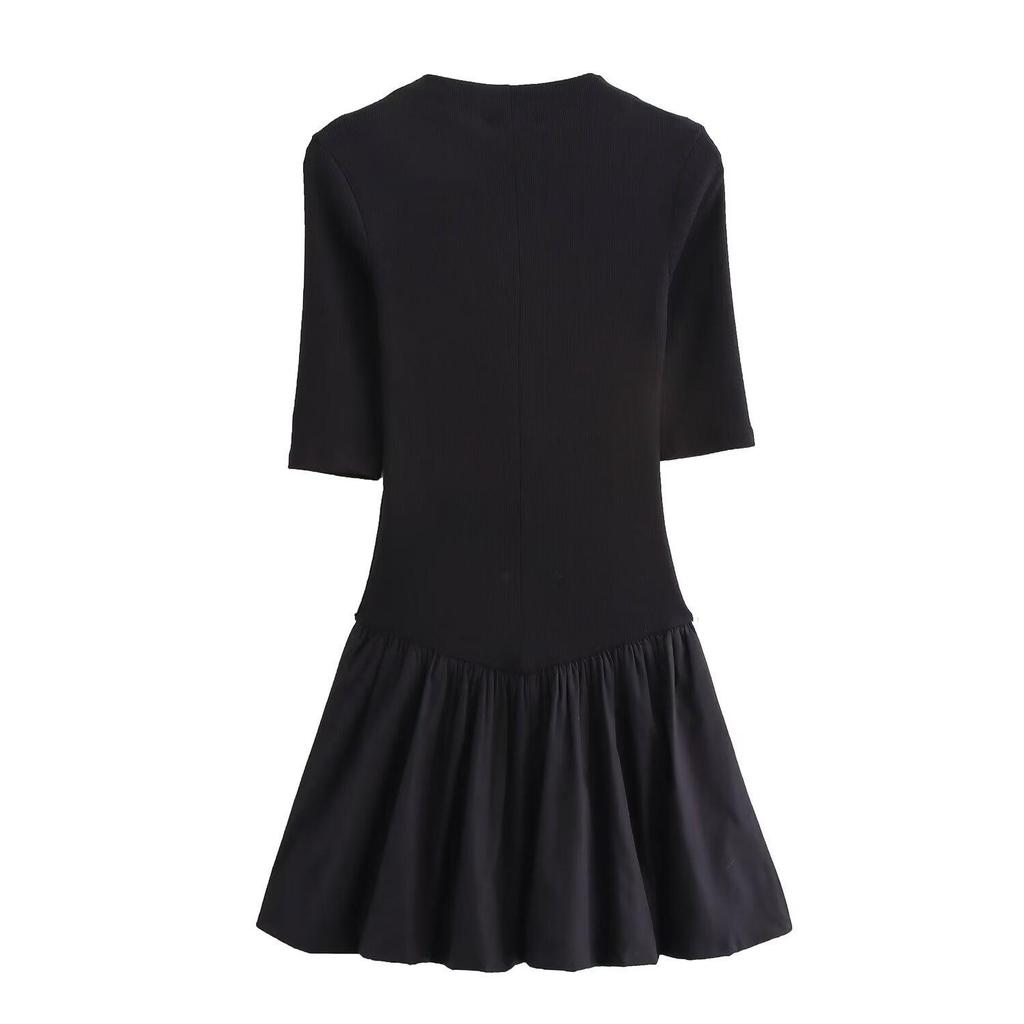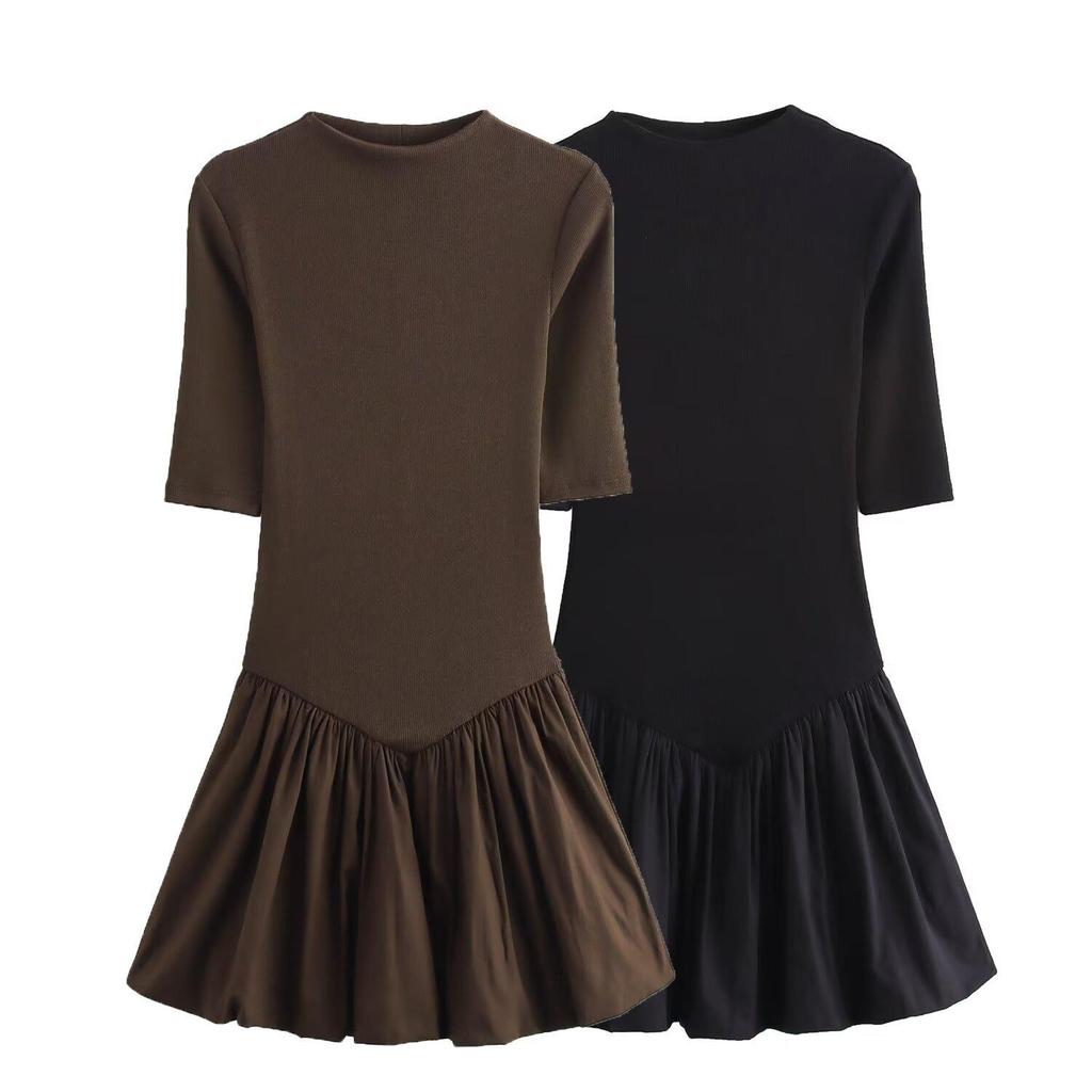 Autumn 2024 Women's European & American Style Poplin Short Sleeve Stand Collar Dress