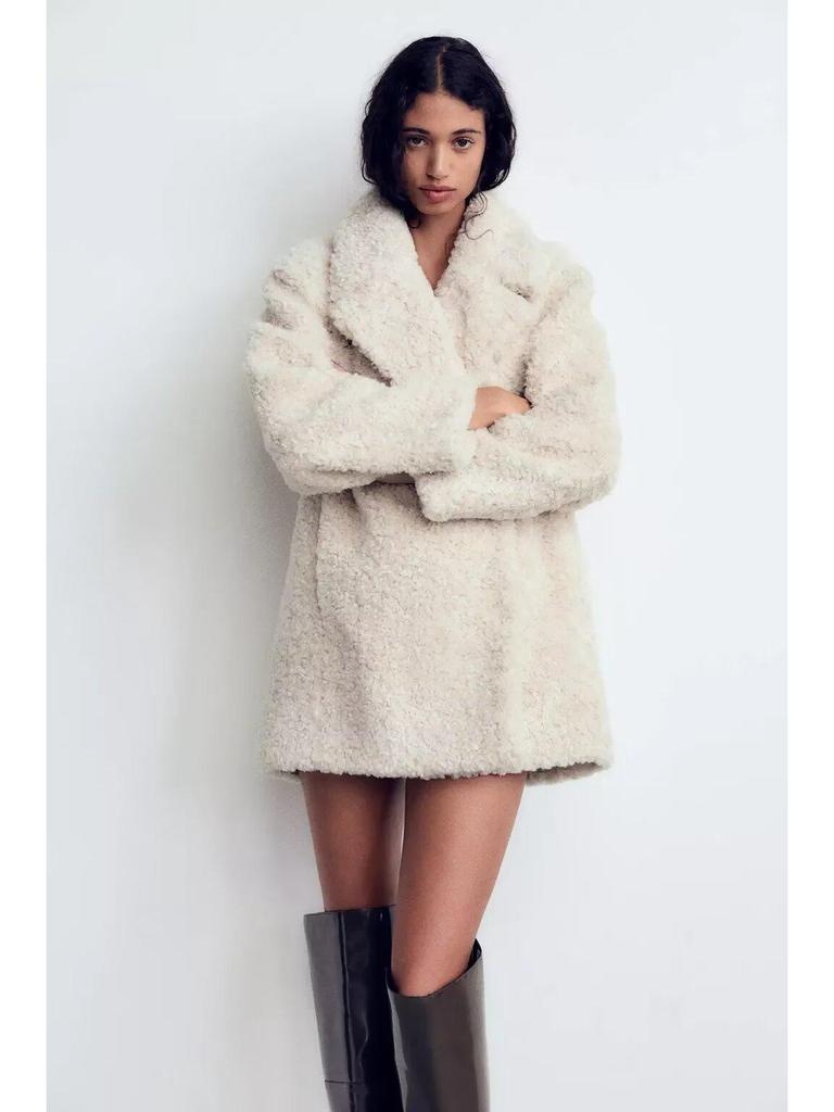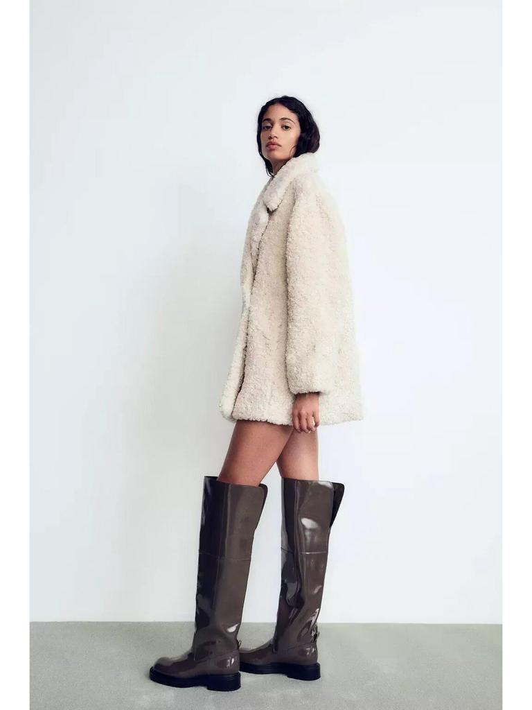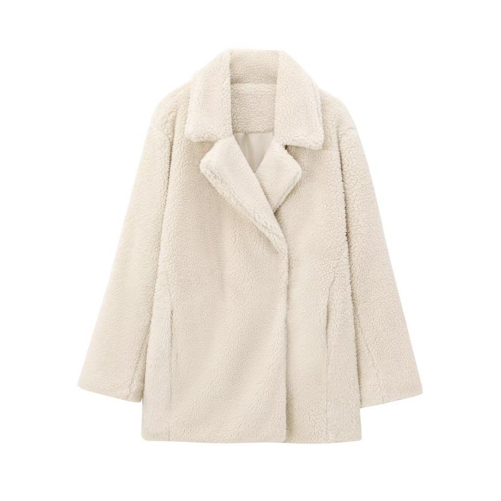Женское пальто из искусственного меха однотонное на осень/зиму 2024: Европейский и американский стиль