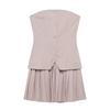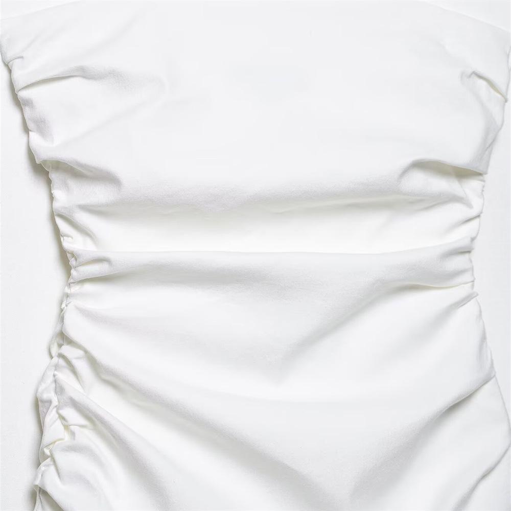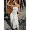Элегантное женское миди-платье без бретелей в стиле пэчворк прилегающего силуэта, весна/лето 2025