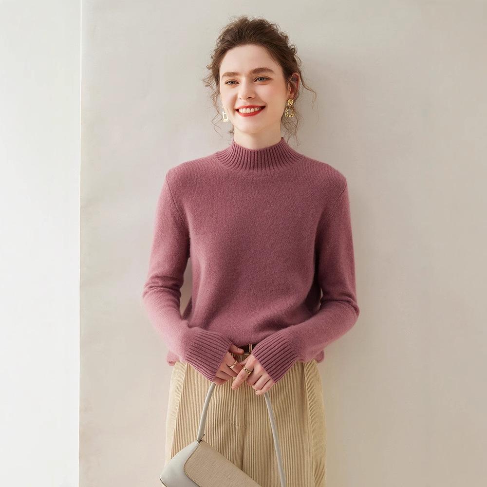 Женский кашемировый свитер однотонный с полувысоким воротом - Приталенный, свободного кроя, вязаный с длинным рукавом для осени/зимы. — купить товар онлайн с бесплатной доставкой до всему миру!