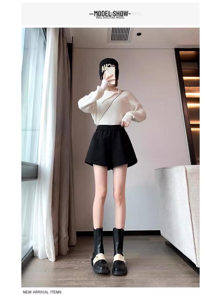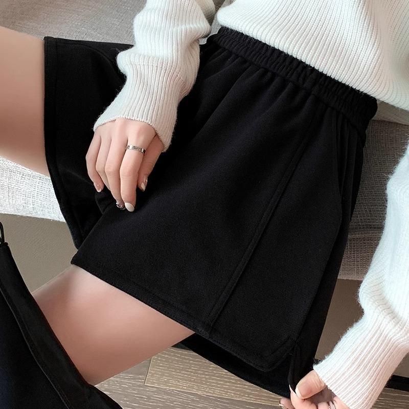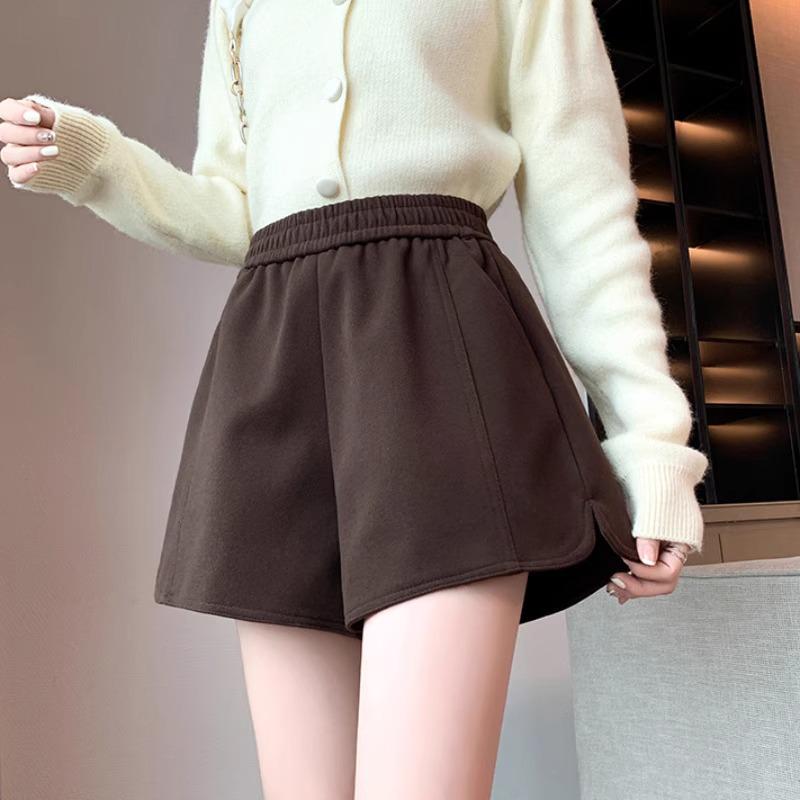 Женские шерстяные шорты А-силуэта на резинке - Осень/Зима 2024, Универсальные свободные буткаты для стройнящего повседневного образа