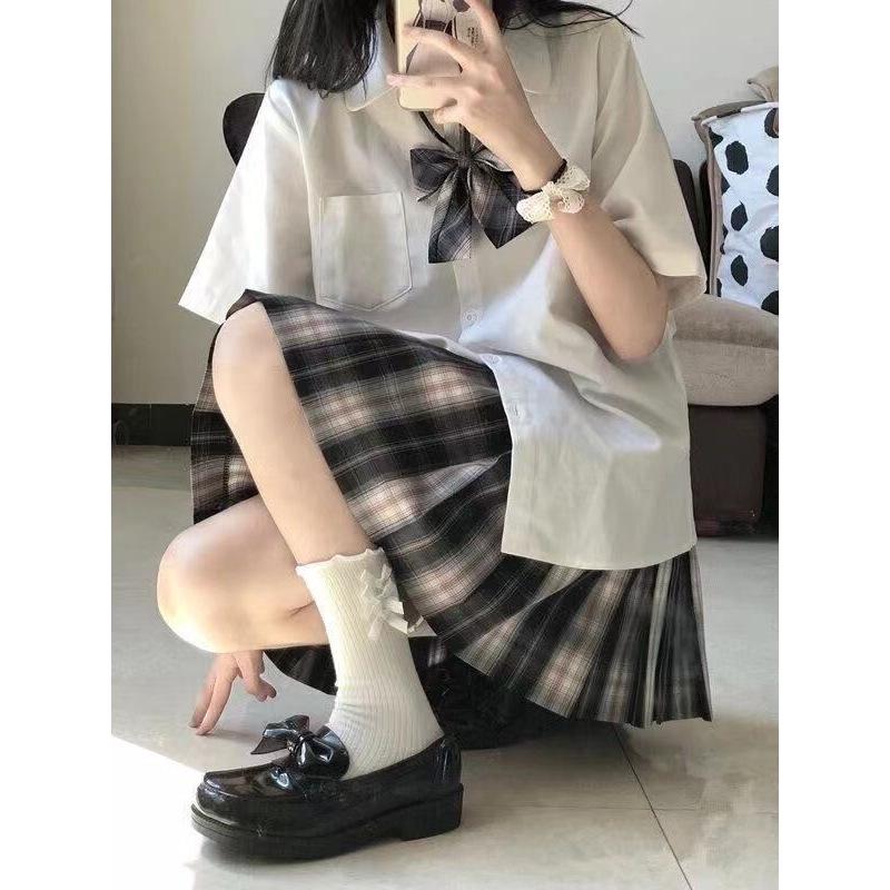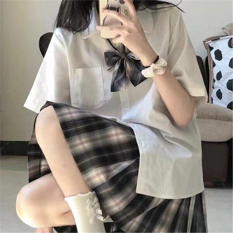 Женская летняя японская школьная форма JK: Милый комплект из двух предметов: белая рубашка с коротким рукавом и юбка