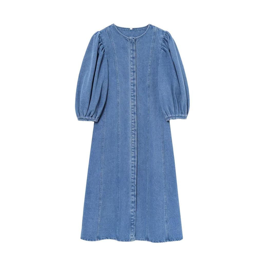 Почувствуйте идеальное сочетание европейского и американского стиля в этом изысканном джинсовом миди-платье.. Изготовлено из высококачественного денима, имеет вневременной круглый вырез и шикарные короткие рукава, предлагая стильное и универсальное дополнение к вашему гардеробу.. Это платье идеально для любого случая, оно легко сочетает в себе комфорт и элегантность.