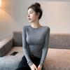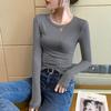 Женский черный трикотажный топ с длинным рукавом и рубчиком, приталенного силуэта, с круглым вырезом - Идеально подходит для весны, осени и зимы. — купить товар онлайн с бесплатной доставкой по всему миру!