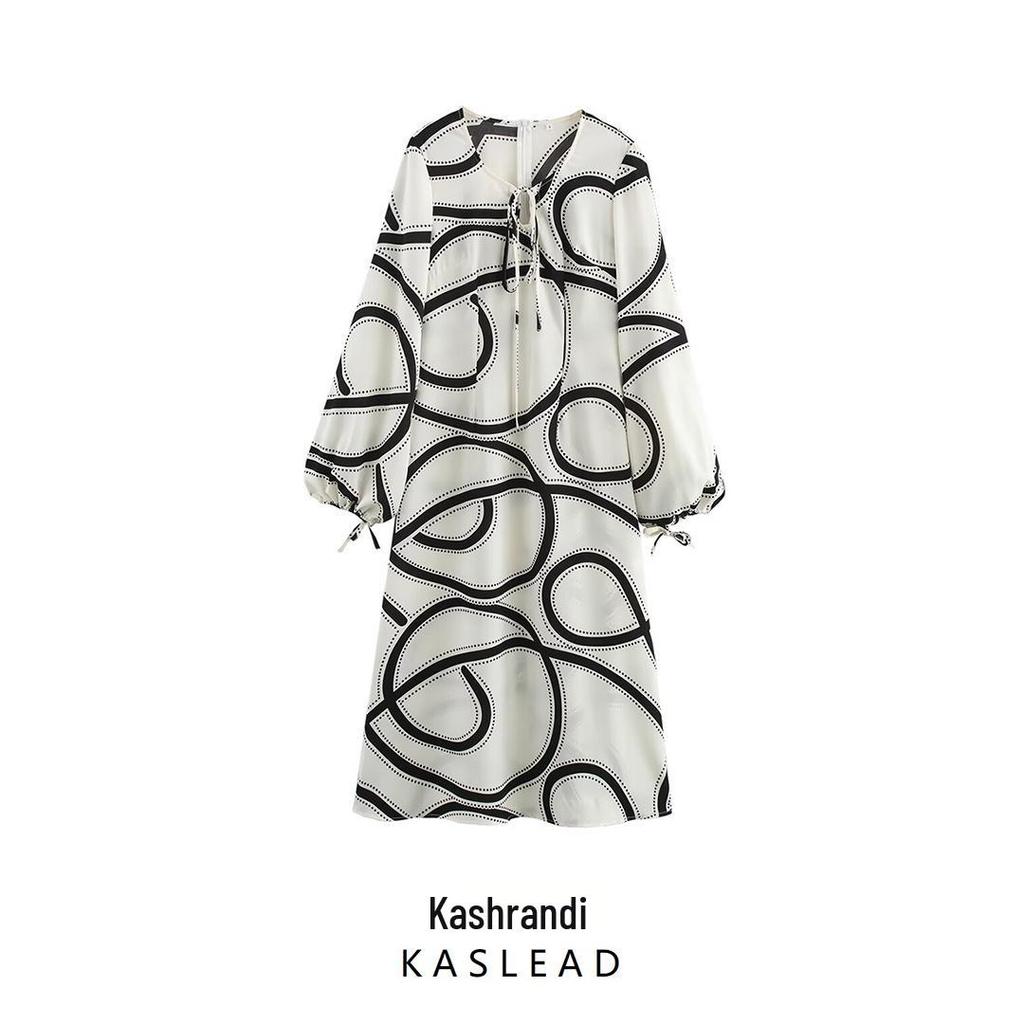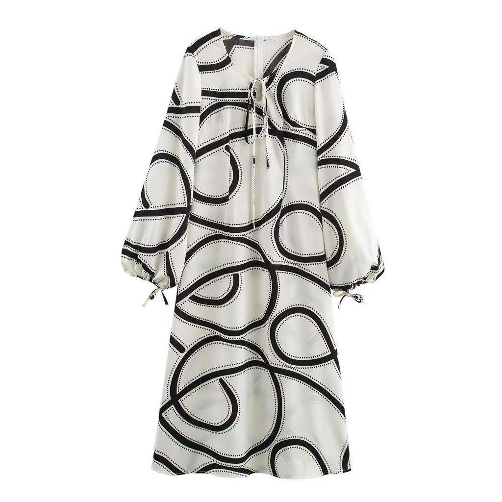 Весна 2025 Женское платье в этническом стиле свободного кроя с длинным рукавом - Европейская и американская мода