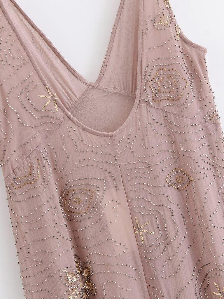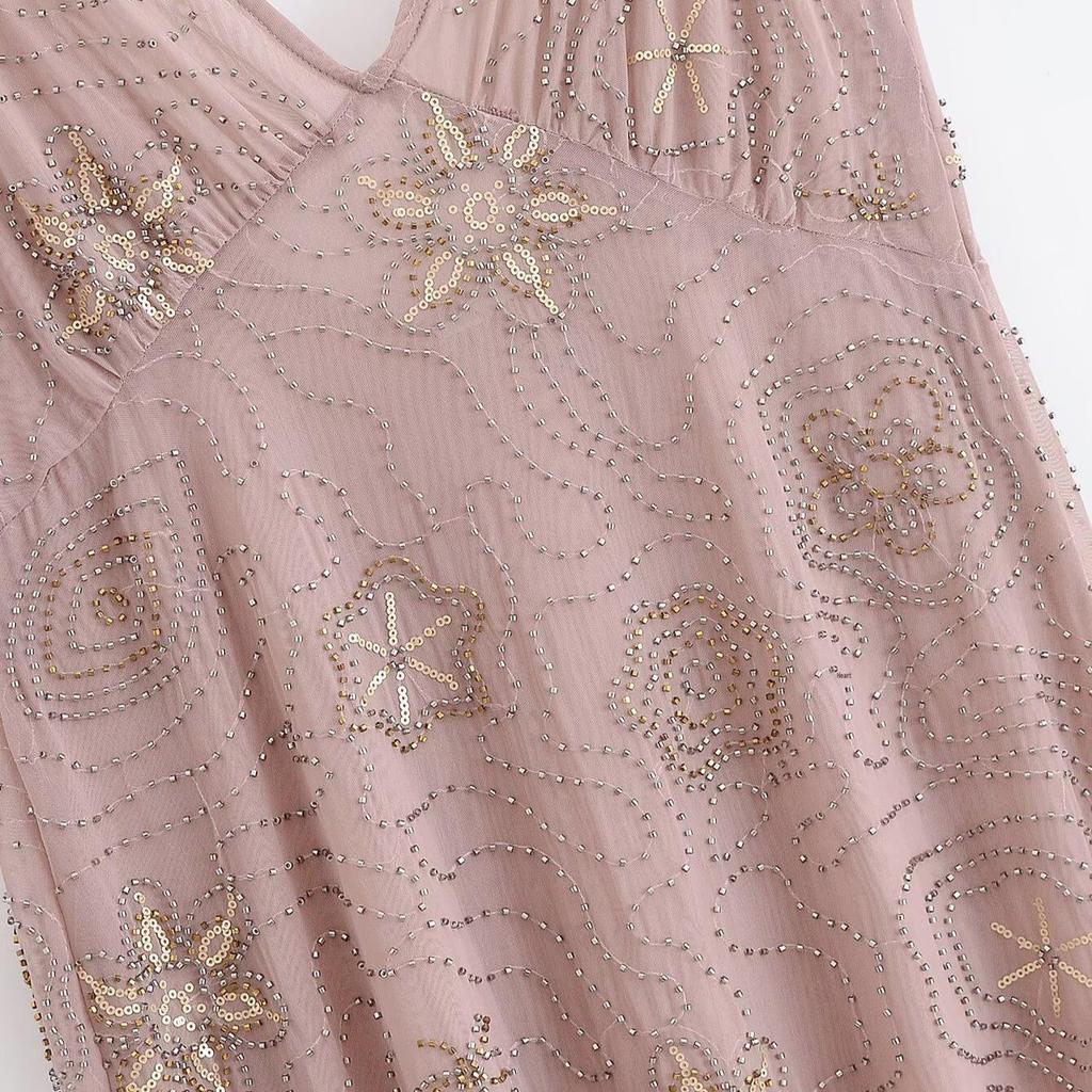 Летнее женское повседневное миди-платье в европейском и американском стиле с пайетками - Модное и простое