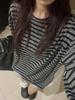 Женская футболка с длинным рукавом в полоску с цветными блоками - Корейский свободный крой, Шикарный гонконгский стиль