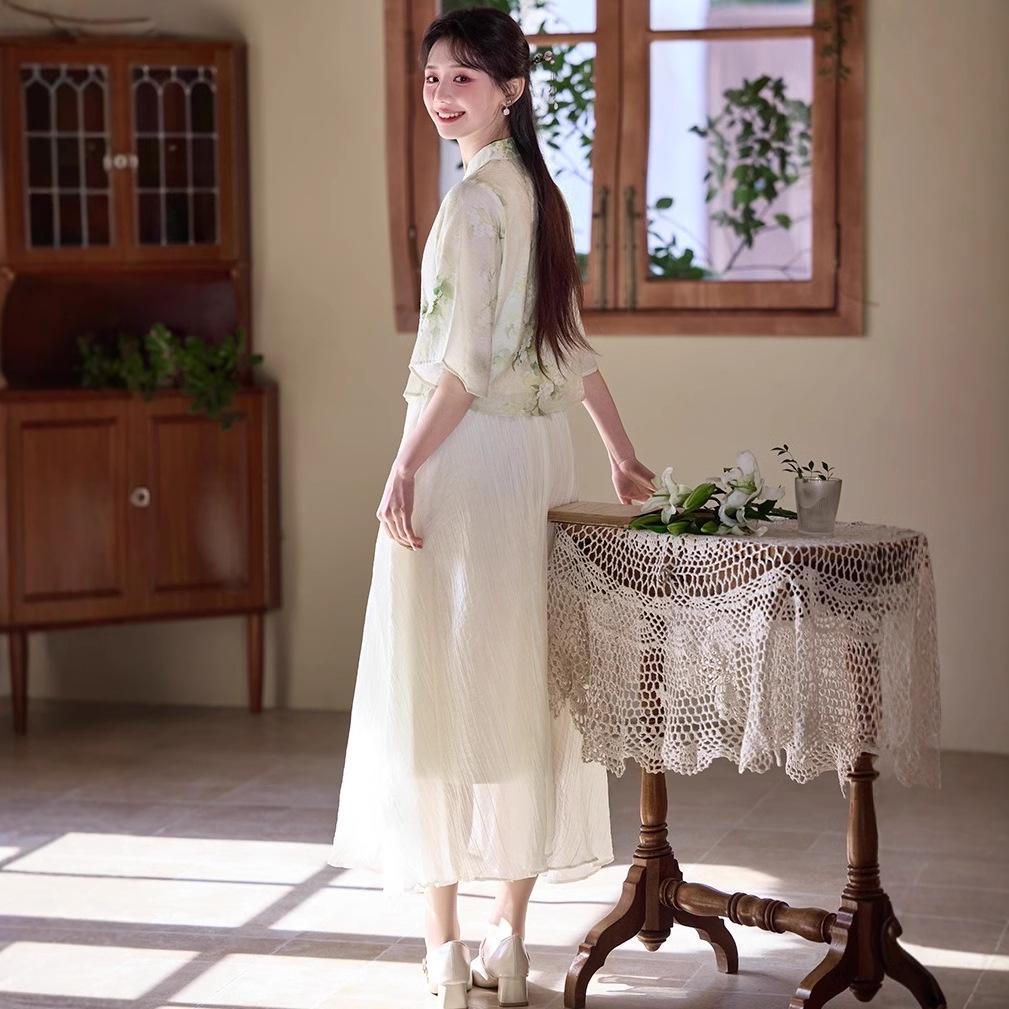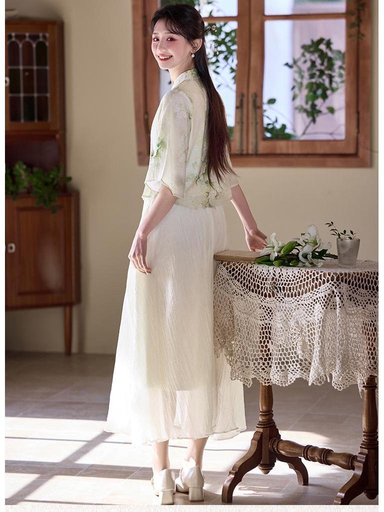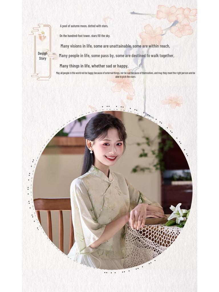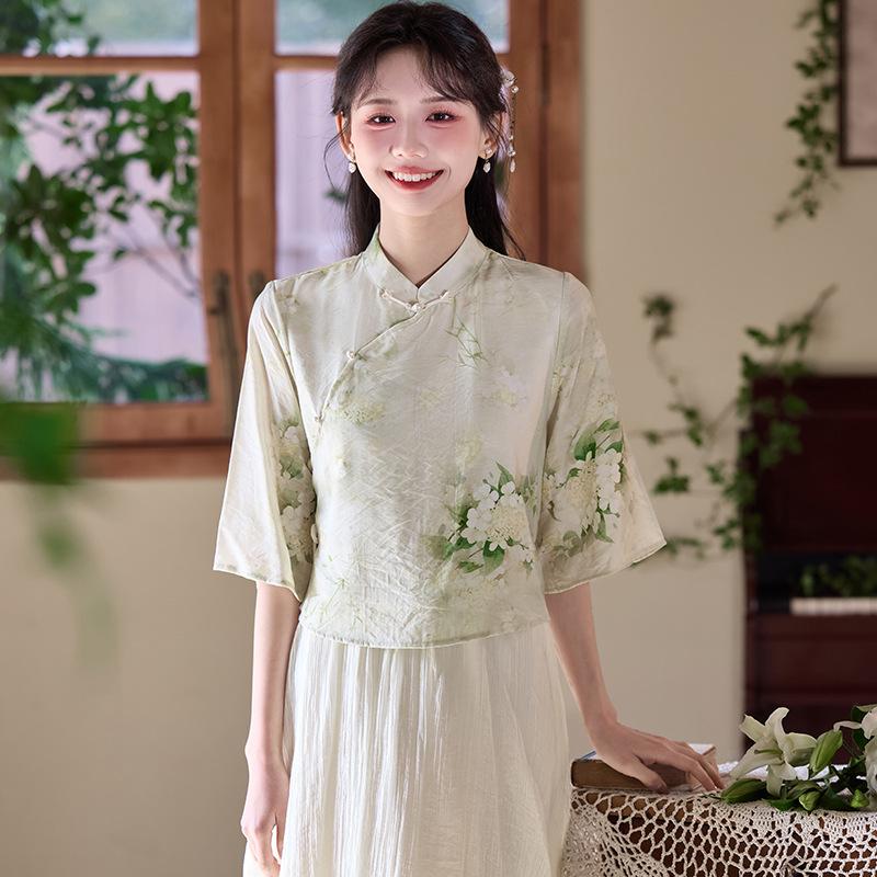Летний китайский ретро костюм Тан с воротником-стойкой, ханьфу, ципао, топ и юбка