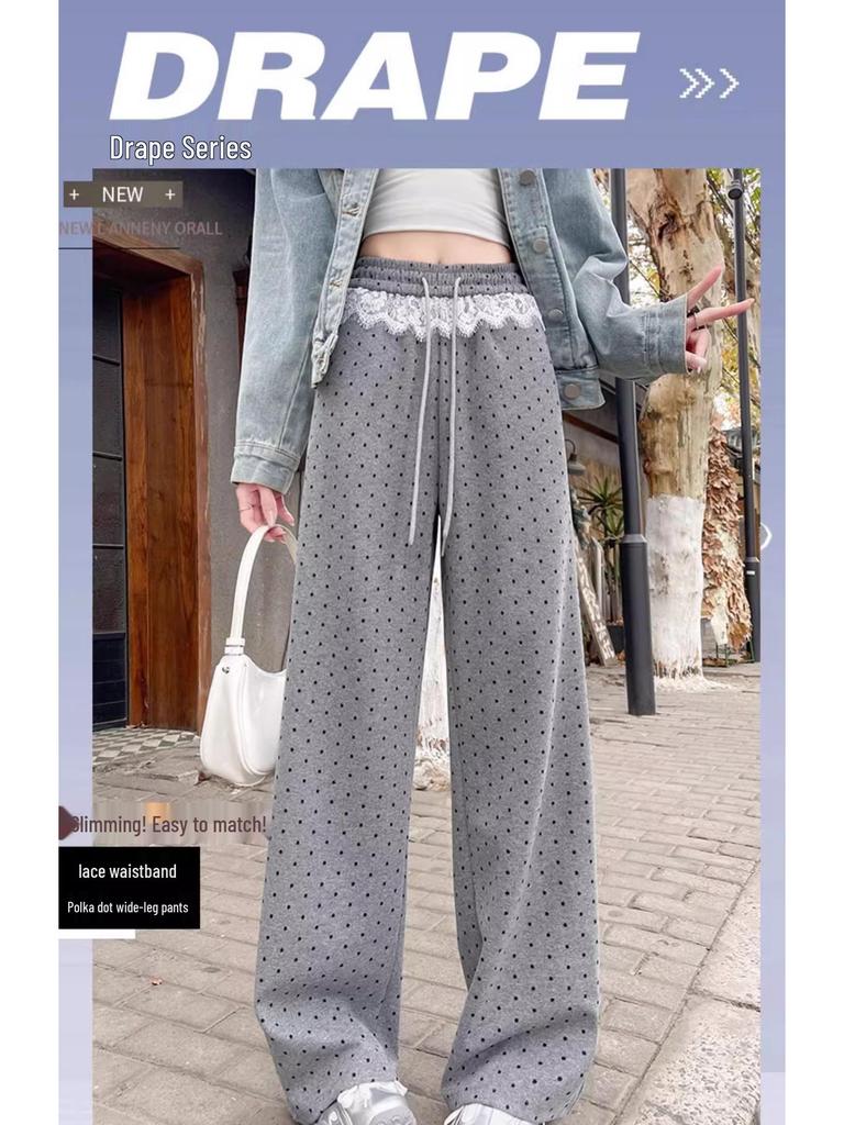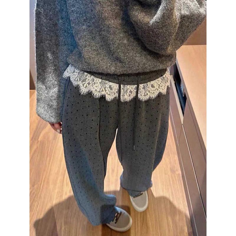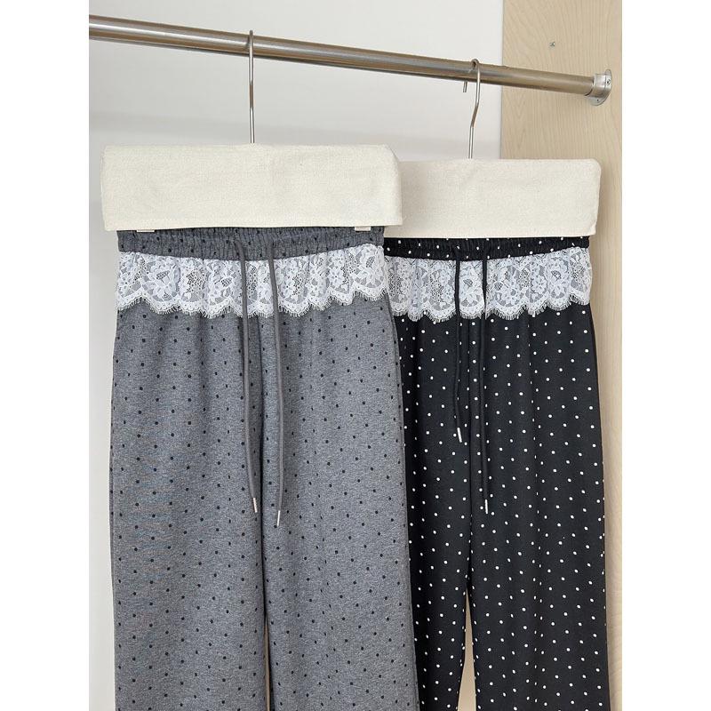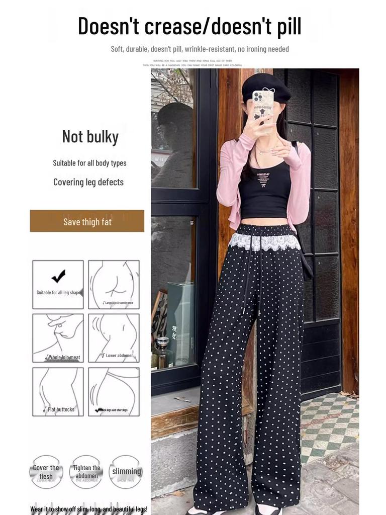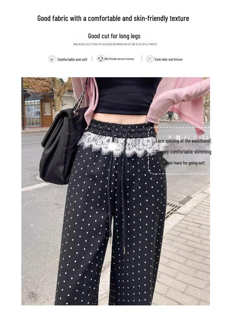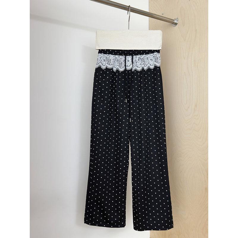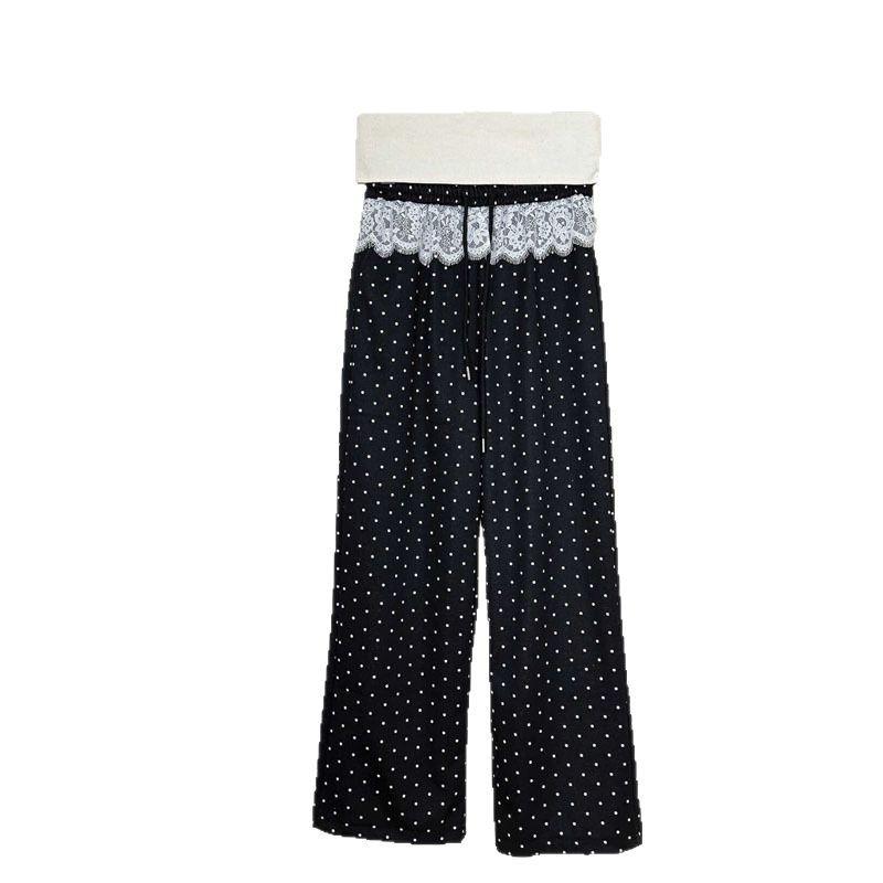 Пополните свой гардероб этими уникальными брюками с высокой посадкой, свободного прямого широкого кроя, идеально подходящими для весны 2025 года.. Эти брюки, изготовленные из легкого полиэстера, отличаются привлекательным лоскутным дизайном, дополненным нежной кружевной отделкой и игривым горошком.. Спортивный стиль обеспечивает как комфорт, так и изящество, что делает их идеальными для повседневной прогулки или стильного домашнего ансамбля.