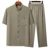 Летняя рубашка с коротким рукавом из ледяного шелка с воротником чжуншань для мужчин среднего и пожилого возраста – комплект в стиле тан для дедушки