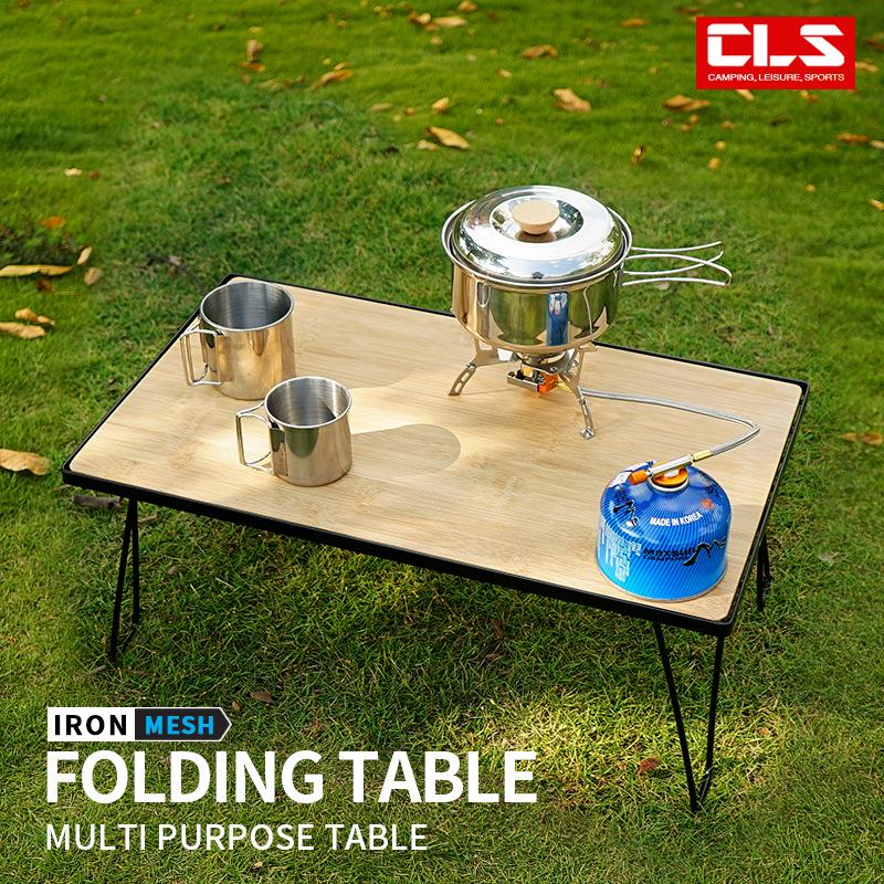 Портативный бамбуковый обеденный стол с сетчатой полкой для кемпинга и барбекю