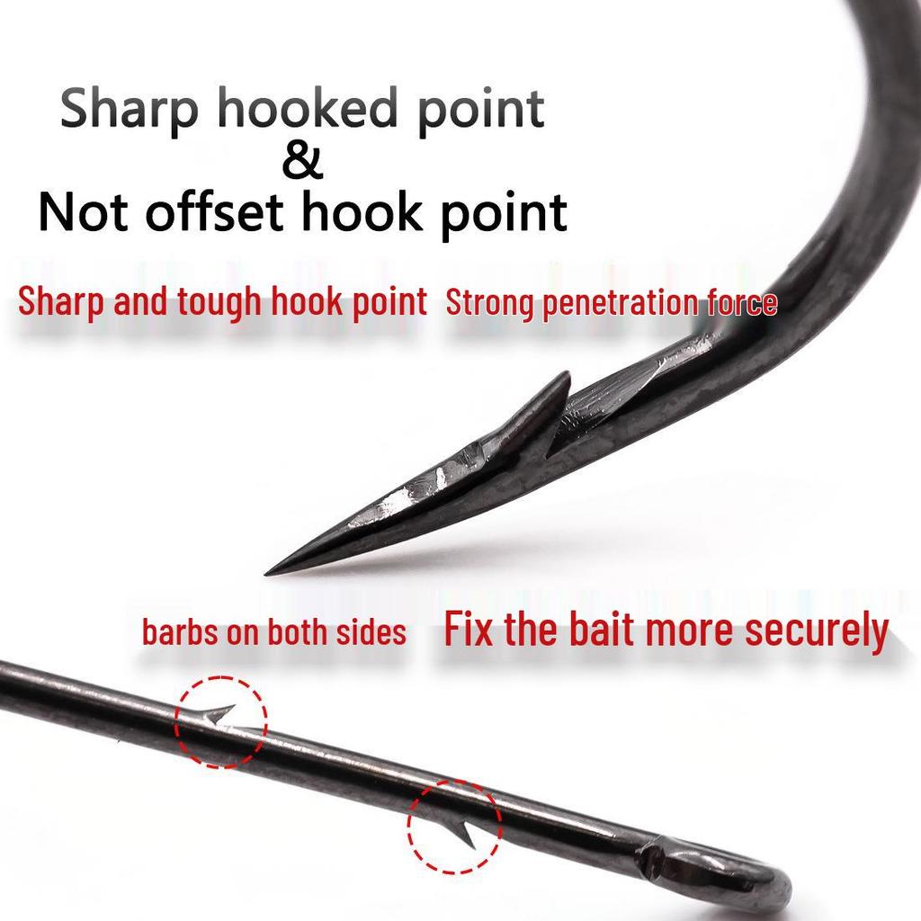 Крючок с длинным цевьем, с двойной бородкой, из усиленной углеродистой стали, нескользящий крючок для мягкой приманки с бородками спереди и сзади