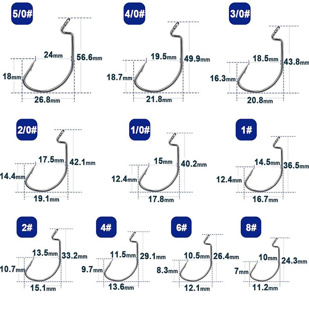 Улучшенный Крючок с Широким Зевом - Высокоуглеродистая Сталь, Устойчивый к Коррозии Крючок для Мягкой Приманки Техасской Оснастки с Колечком.