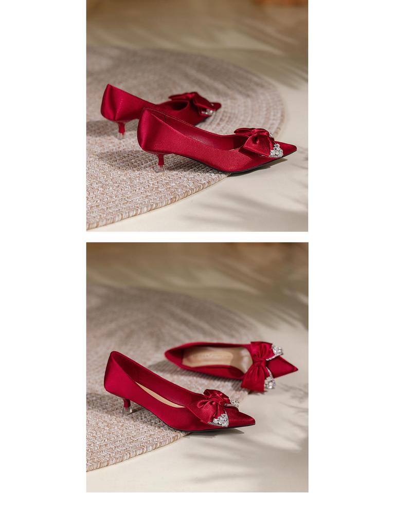 Свадебные туфли на высоком каблуке 2023: Туфли С острым носком в стиле Сю Хэ, Удобные для беременных женщин, Китайские свадебные туфли