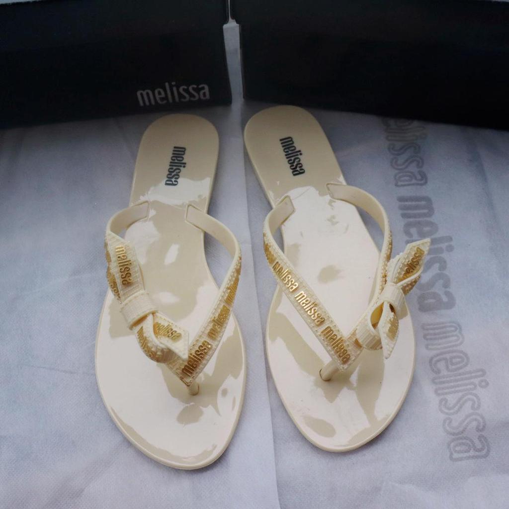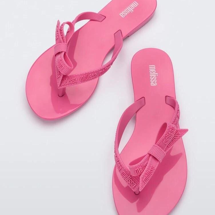 2025 Женские шлепанцы Melissa с бантом - Простые, Модные, Летние пляжные туфли на плоской подошве