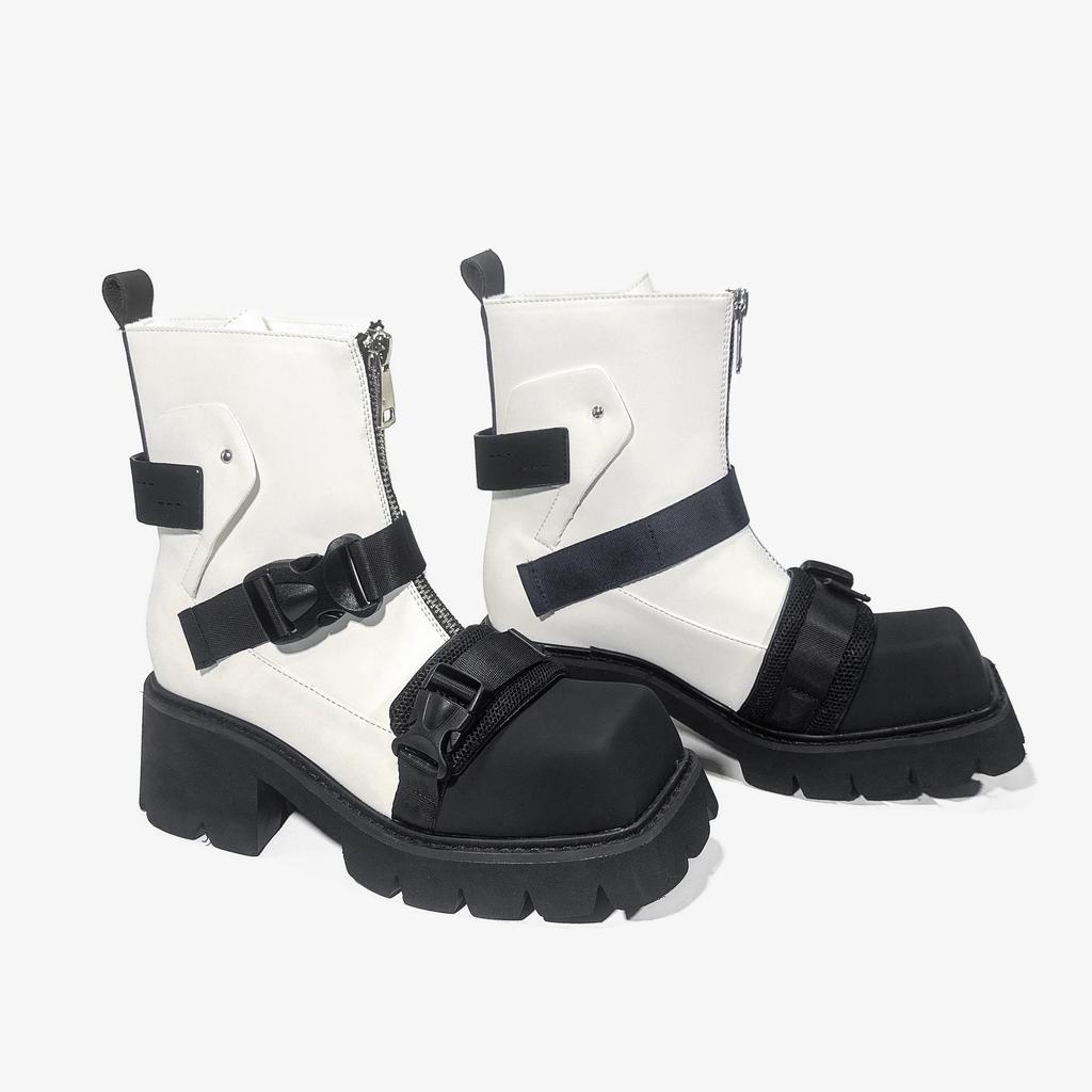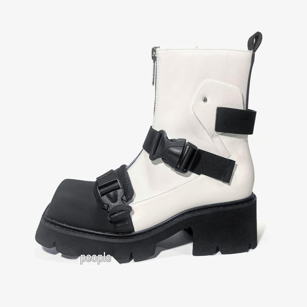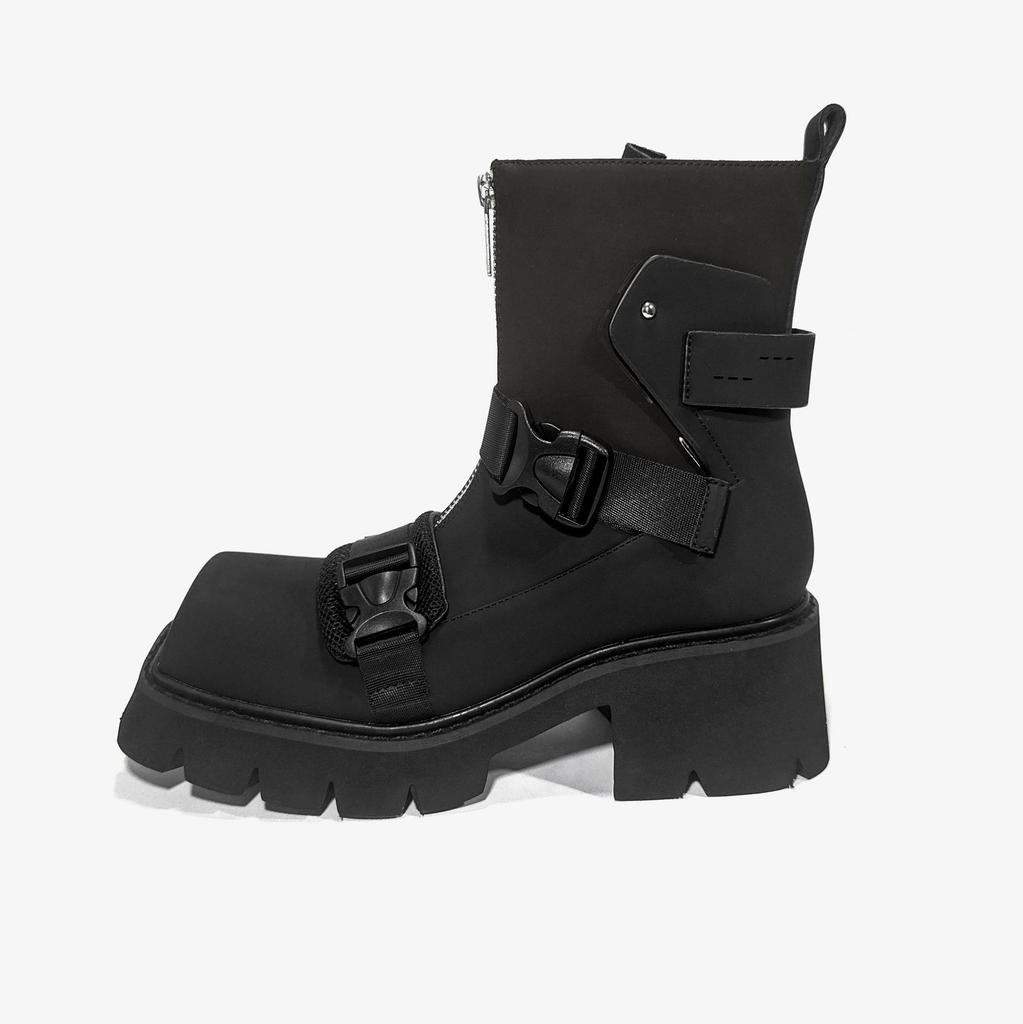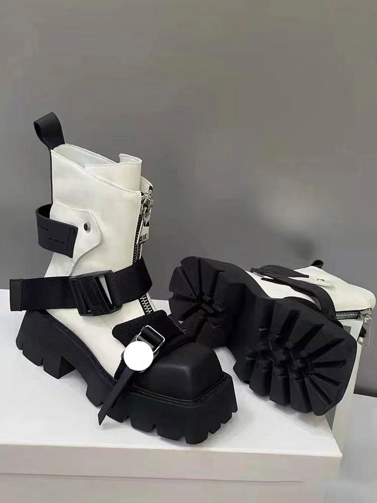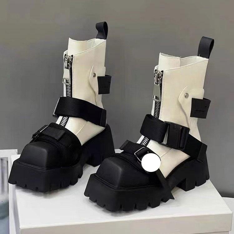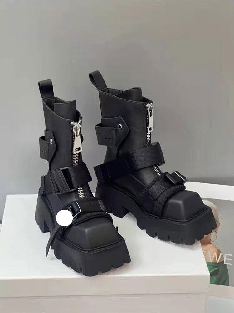 2024 Женские Модные Черные Вельветовые Мотоциклетные Ботинки с Квадратным Носком и Толстой Подошвой