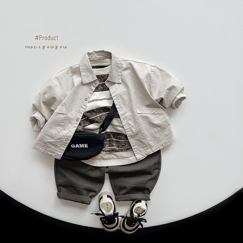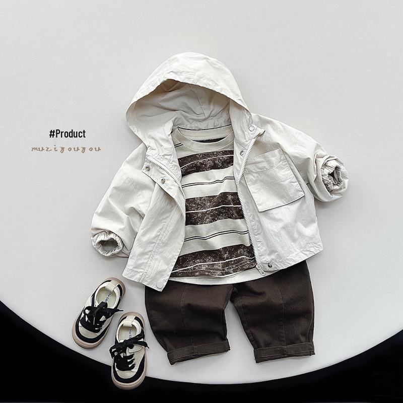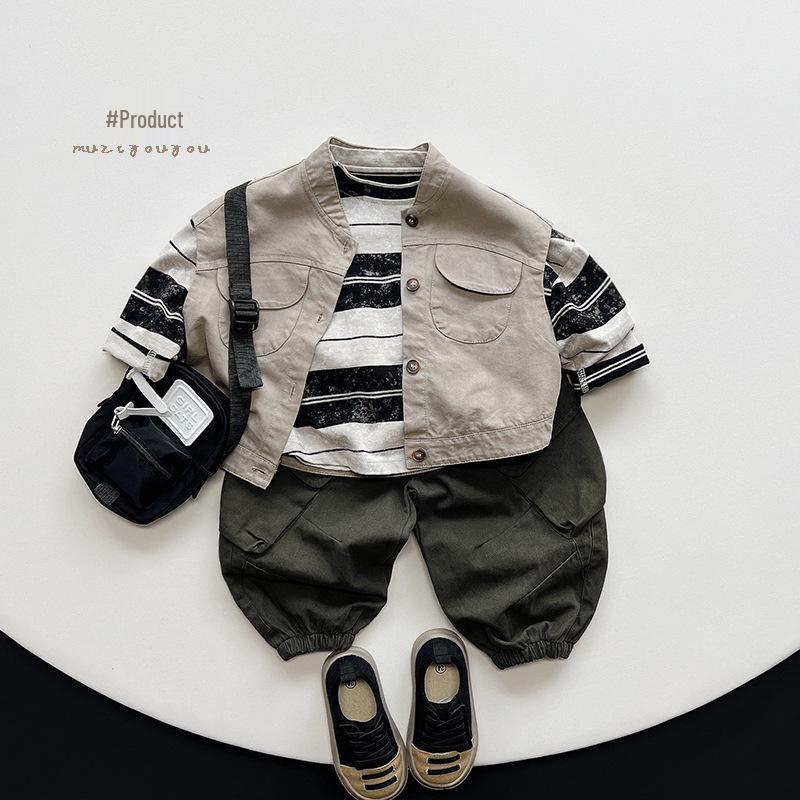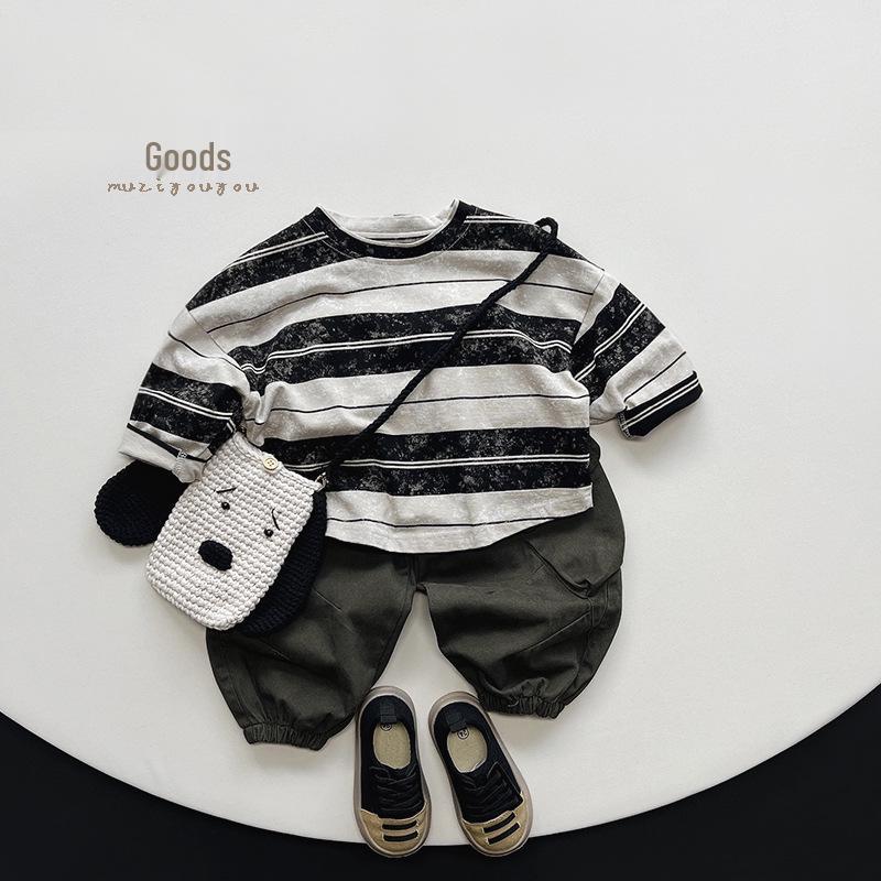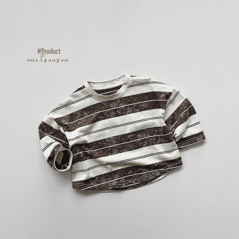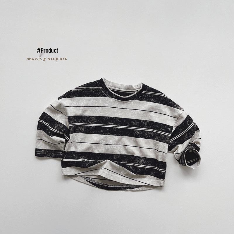 Детская футболка в стиле ретро с полосками и эффектом потертости - Унисекс, корейский стиль, весна 2025