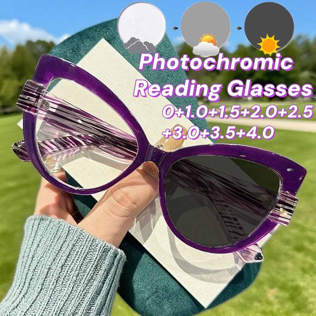 Ретро Очки Кошачий глаз Фотохромные для чтения Модные Готовые Очки с диоптриями от 0 до +4.0 Солнцезащитные очки с изменяющими цвет на улице