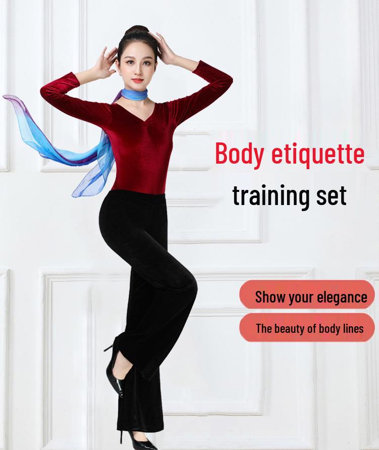 Женский элегантный золотой бархатный утягивающий тренировочный комплект для осени/зимы