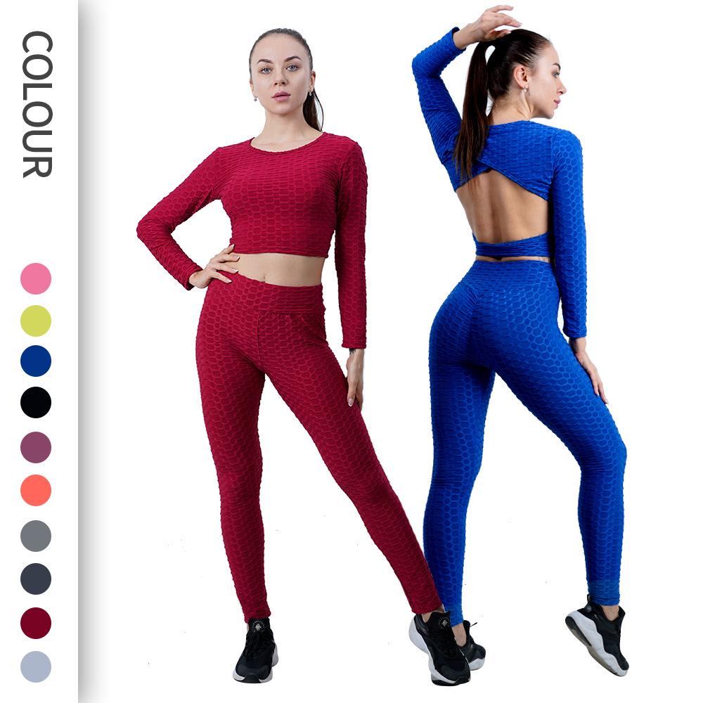 Европейский и американский женский комплект для йоги: Фитнес-одежда с высокой талией, с эффектом пуш-ап для ягодиц, персикового цвета — купить товар онлайн с бесплатной доставкой до всему миру!