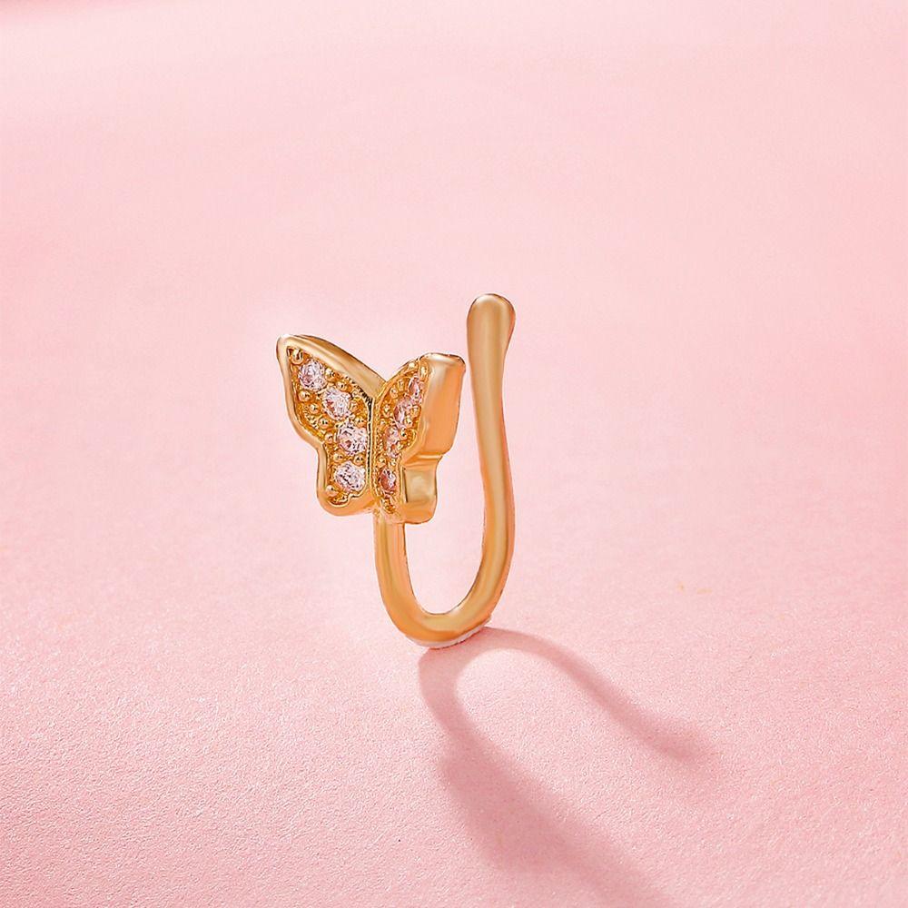 Медный клипса на нос кольцо со стразами без пирсинга клипса для уха манжета панк бабочка кольцо для носа женское