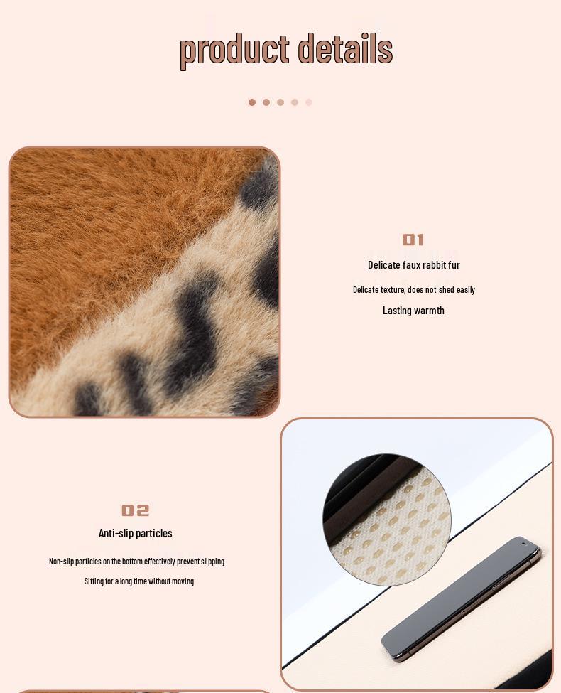 Зимняя подушка на автомобильное сиденье с леопардовым принтом, Толстый теплый кроличий мех, Мягкая и удобная внутренняя подушка