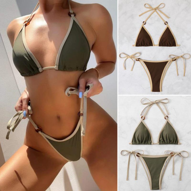 Европейский и американский высококлассный женский сексуальный купальник бикини на шнуровке, идеально подходящий для пляжного отдыха — купить товар онлайн с бесплатной доставкой до всему миру!
