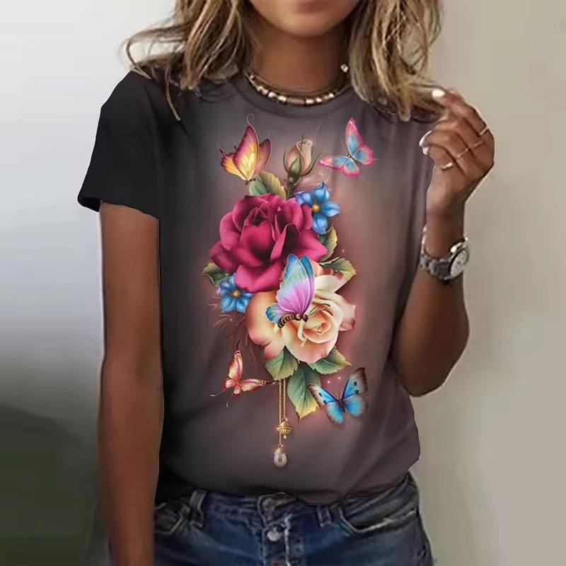 Летняя женская футболка с круглым вырезом, модный 3D-принтованный цветочный узор, удобная свободная футболка с коротким рукавом