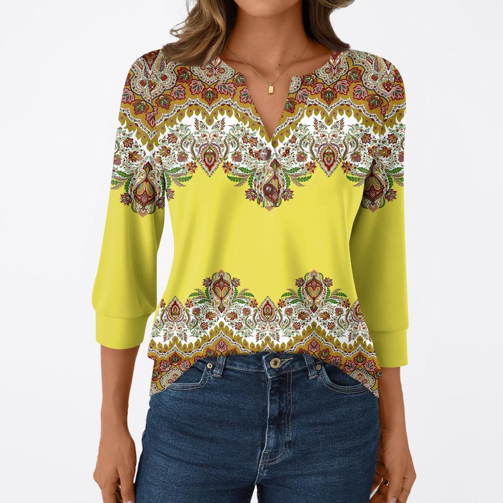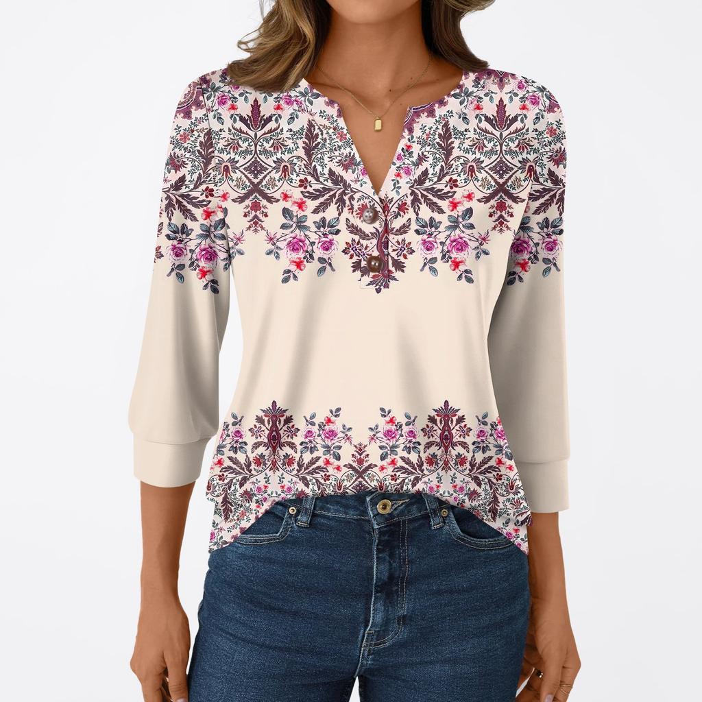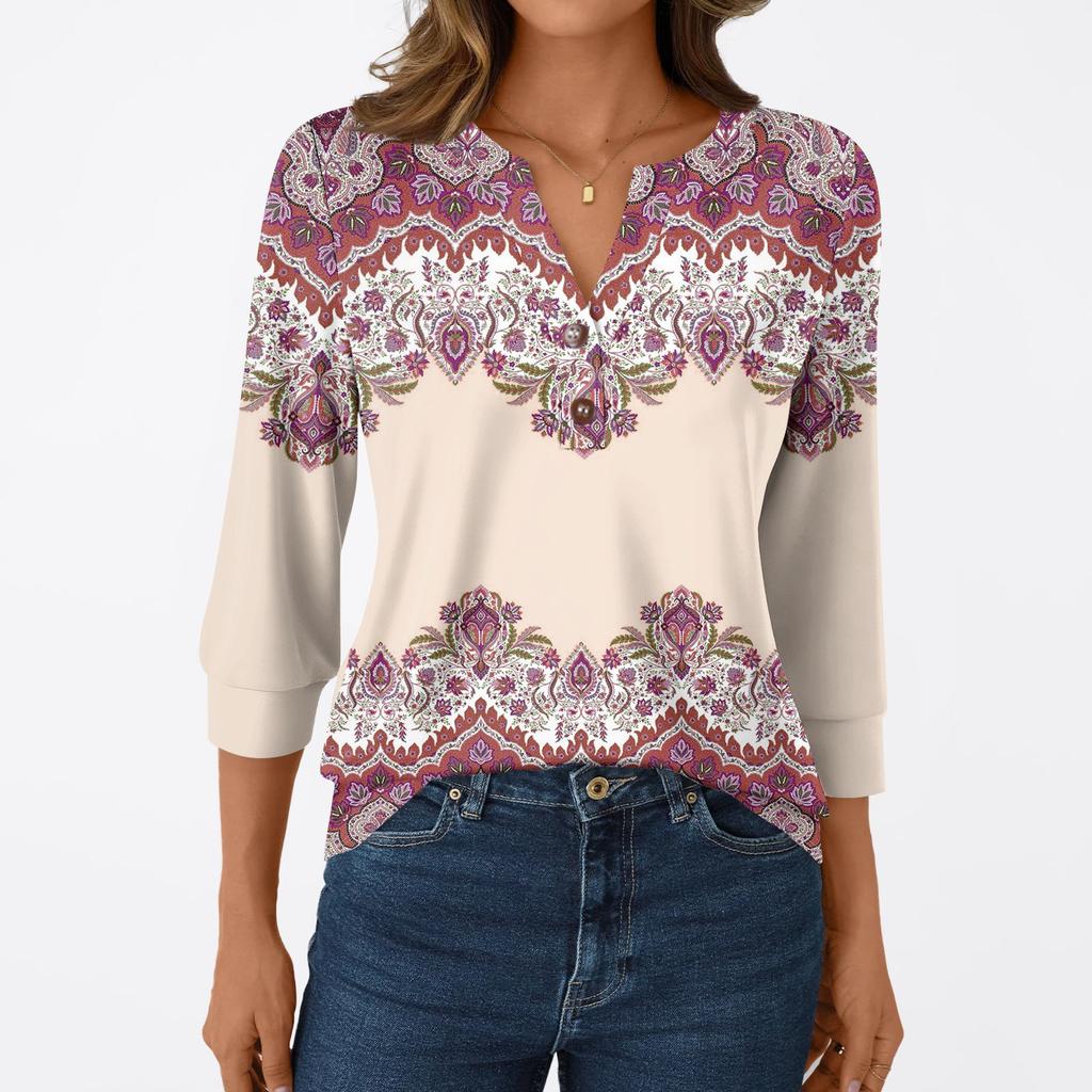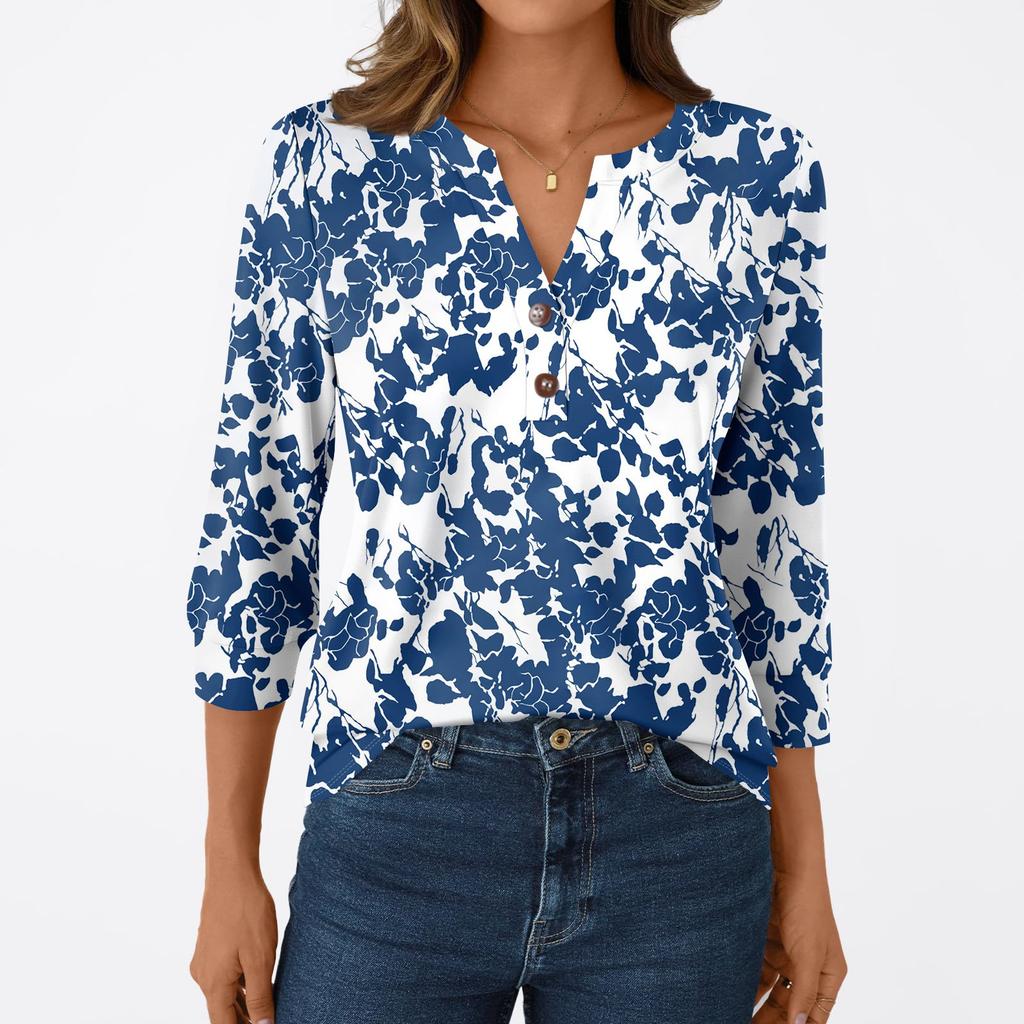 Женская модная повседневная футболка с рукавом 3/4, принтами, V-образным вырезом и пуговицами описание 1. ткань: Высококачественные короткие рукава из искусственного хлопка, ткань в целом дышащая и эластичная, очень мягкая и приятная на ощупь, комфортная для ношения в течение всего дня.. дизайн: Женская рубашка, повседневный топ, круглый вырез, свободный крой, удобный материал. 3. Соответствие: Сочетайте с узкими брюками, куртками, джинсами, капри, брюками или юбками весной или летом, чтобы сделать вас более элегантной и женственной 4. Повод: Модные женские рубашки подходят для работы, отдыха, пляжа, школы, прогулок, встреч, дома и повседневной носки.. 【 Стирка и уход 】: Вымойте и высушите холодной водой. Не используйте чрезмерно высокую температуру воды во время очистки, чтобы избежать выцветания. Разные мониторы могут иметь небольшие различия в цвете при просмотре. Пожалуйста, не обращайте внимания на информацию о товаре.: Пол: Женский праздник: досуг, Материал:Полиэстер, спандекс. Тип рисунка.: печать : повседневная и сексуальная Длина: Рукава 3/4 Толщина: стандартный метод очистки: вымойте руки в холодной воде, повесьте или высушите. Вы получите:1 шт. женский топ